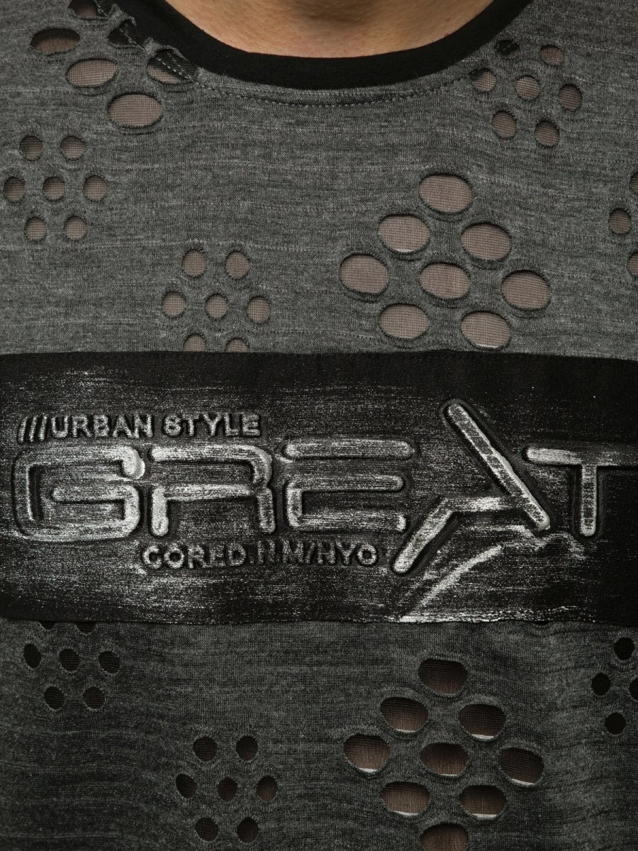 Tričko má klasický okrúhly výstrih do tvaru U. Vďaka potlači na prednej strane a odreninám to vyzerá veľmi pôsobivo. Tričko bolo vyrobené z vysoko kvalitnej bavlny a polyesteru. To znamená, že sa pekne prispôsobuje postave, nerozťahuje , je pohodlné na nosenie, je mäkké a príjemné na dotyk.
