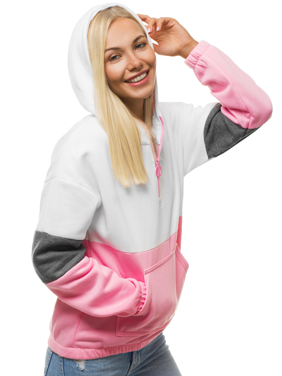 Mikina je obliekaná cez hlavu. Má praktickú kapucňu, ktorá bude ako stvorená na chladné, veterné dni. Jej spodok a rukávy sú ukončené lemami, ktoré jej dodávajú športový charakter. Na prednej strane mikiny je vrecko a la klokan. Mikina je vyrobená z kombinácie bavlny a polyesteru. Vďaka tomu je príjemná na dotyk, pohodlná na nosenie, pekne prilieha k postave, neťahá sa a nekrčí sa.