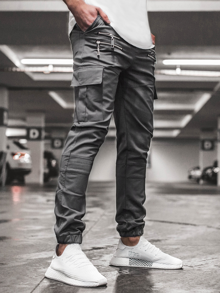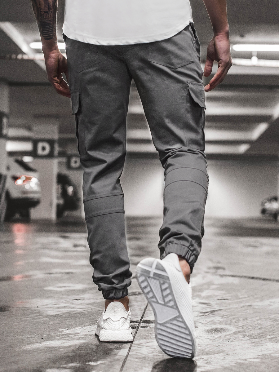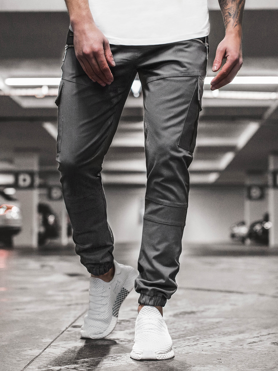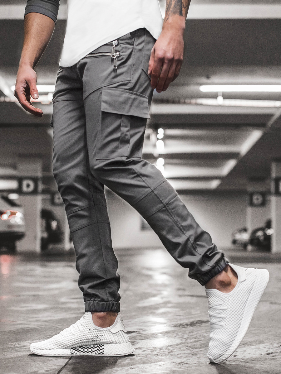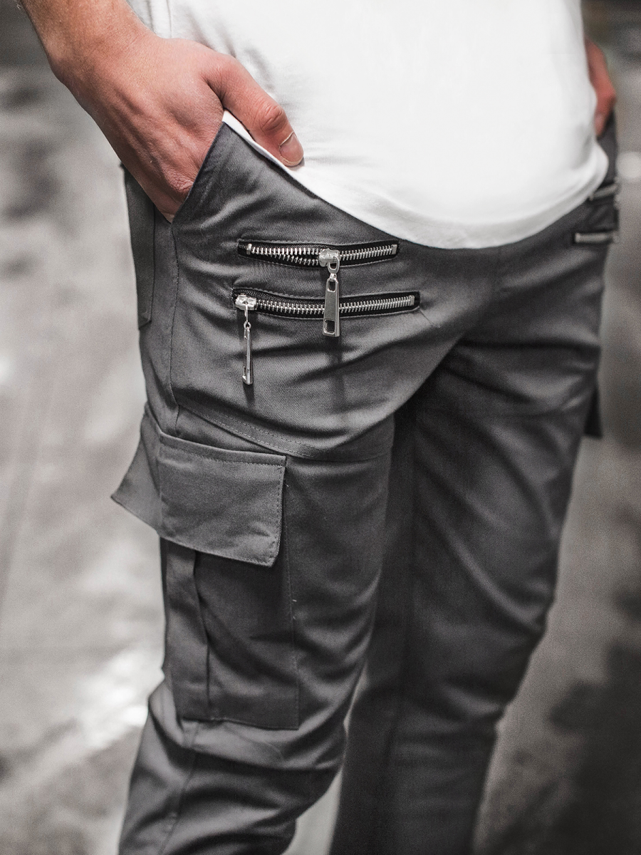 Nohavice majú chino strih. Ich pás a nohy sú zakončené zvarmi, čo im dodáva športový charakter. Nohavice majú vrecká na prednej, zadnej a bočnej strane, kde môžete skryť svoj telefón, kľúče alebo peňaženku. Ozdobný zámok na prednej strane im dodáva originálny vzhľad. Nohavice boli vyrobené z bavlny s elastanom. Vďaka tomu pekne sedia na tele, sú príjemné na nosenie, príjemné na dotyk a vzdušné.