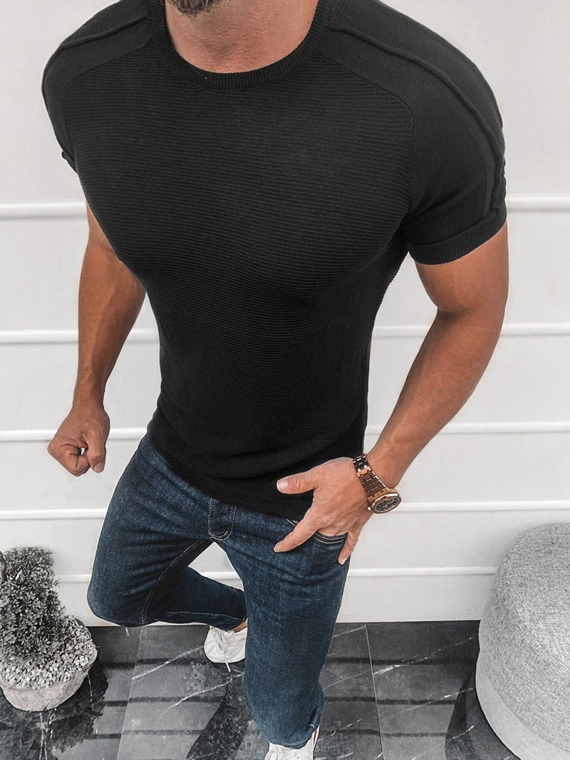 Tričko má klasický okrúhly výstrih do U, krátke rukávy a pruhovanú textúru. Bolo vyrobené z kombinácie bavlny, akrylu a viskózy, vďaka čomu sa pohodlne nosí, je príjemné na dotyk, pekne prilieha k postave, časom sa nerozťahuje a nekrčí.