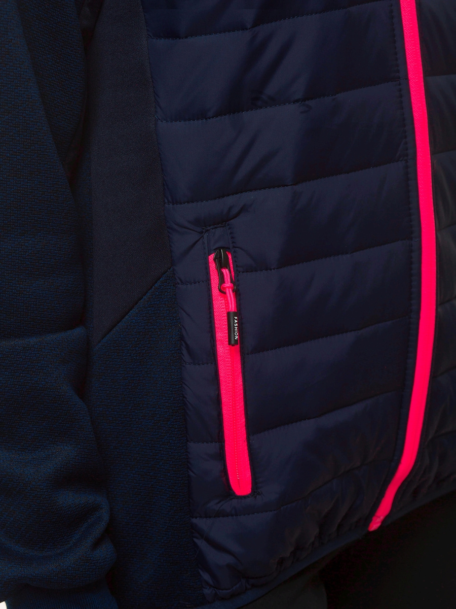Mikina sa zapína na zips. Má praktickú kapucňu, ktorá bude ako stvorená na daždivé, veterné a chladné dni. Mikina má na bokoch a na rukáve vrecká, kam môžete schovať kľúče, telefón alebo peňaženku. Jej spodok a rukávy sú ukončené lemami, ktoré jej dodávajú športový charakter. Vďaka prešívaniu na prednej strane mikina veľmi efektne.