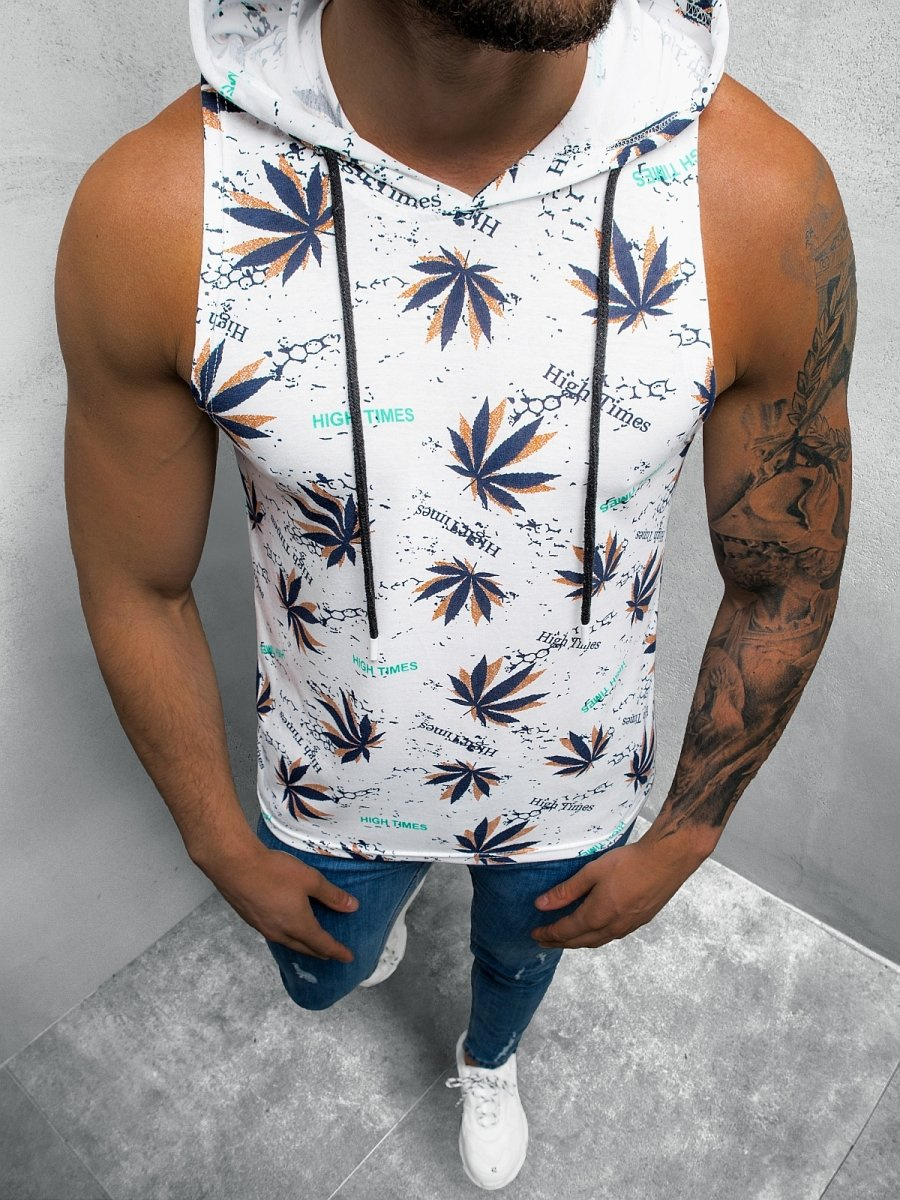 Tričko pochádza z najnovšej kolekcie. Nemá rukávy a má praktickú kapucňu, ktorá bude ideálna na chladnejšie a veternejšie dni. Prednú aj zadnú stranu trička zdobí efektná pútavá potlač. Bolo vyrobené z kombinácie bavlny a polyesteru. Vďaka tomu je pohodlné na nosenie, príjemné na dotyk, pekne sedí na postave a je odolné voči poškodeniu a pokrčeniu.