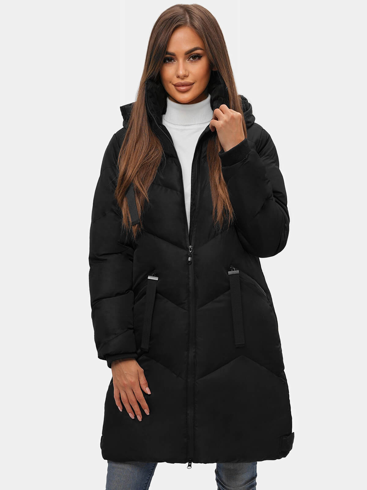 Bunda pochádza z novej kolekcie. Zapína sa na zips a je pokrytá prešívaním. Má kapucňu, ktorá je ideálna pre chladné, veterné, daždivé a zasnežené dni. Vysoký komínový golier a rukávy s manžetami chránia pred studenými poryvmi vetra. Na bokoch bundy sú vrecká na zips, kam schováte potrebné drobnosti. Bola celá z polyesteru, čo znamená, že sa nekrčí, rýchlo schne a pekne sedí na tele.