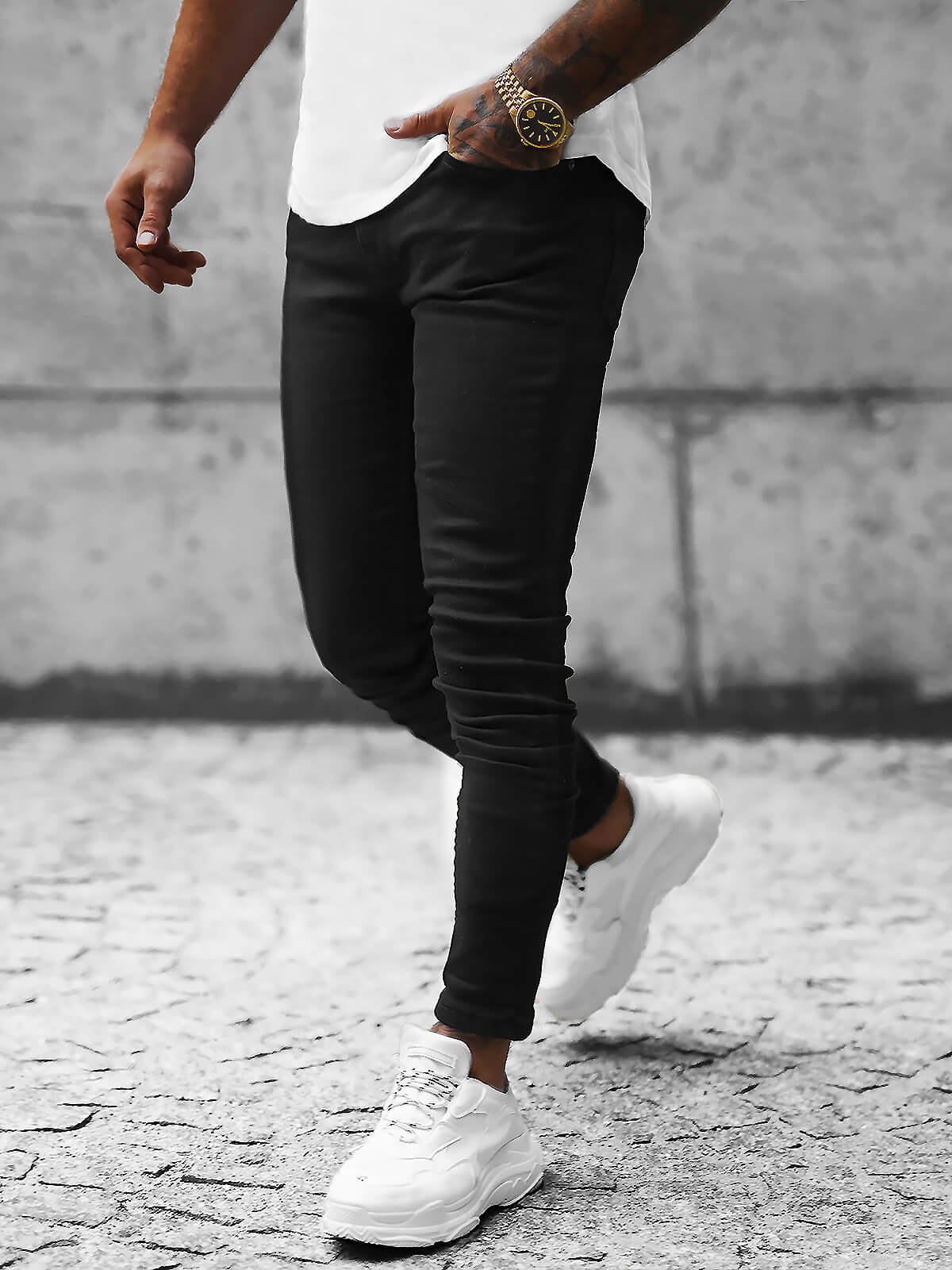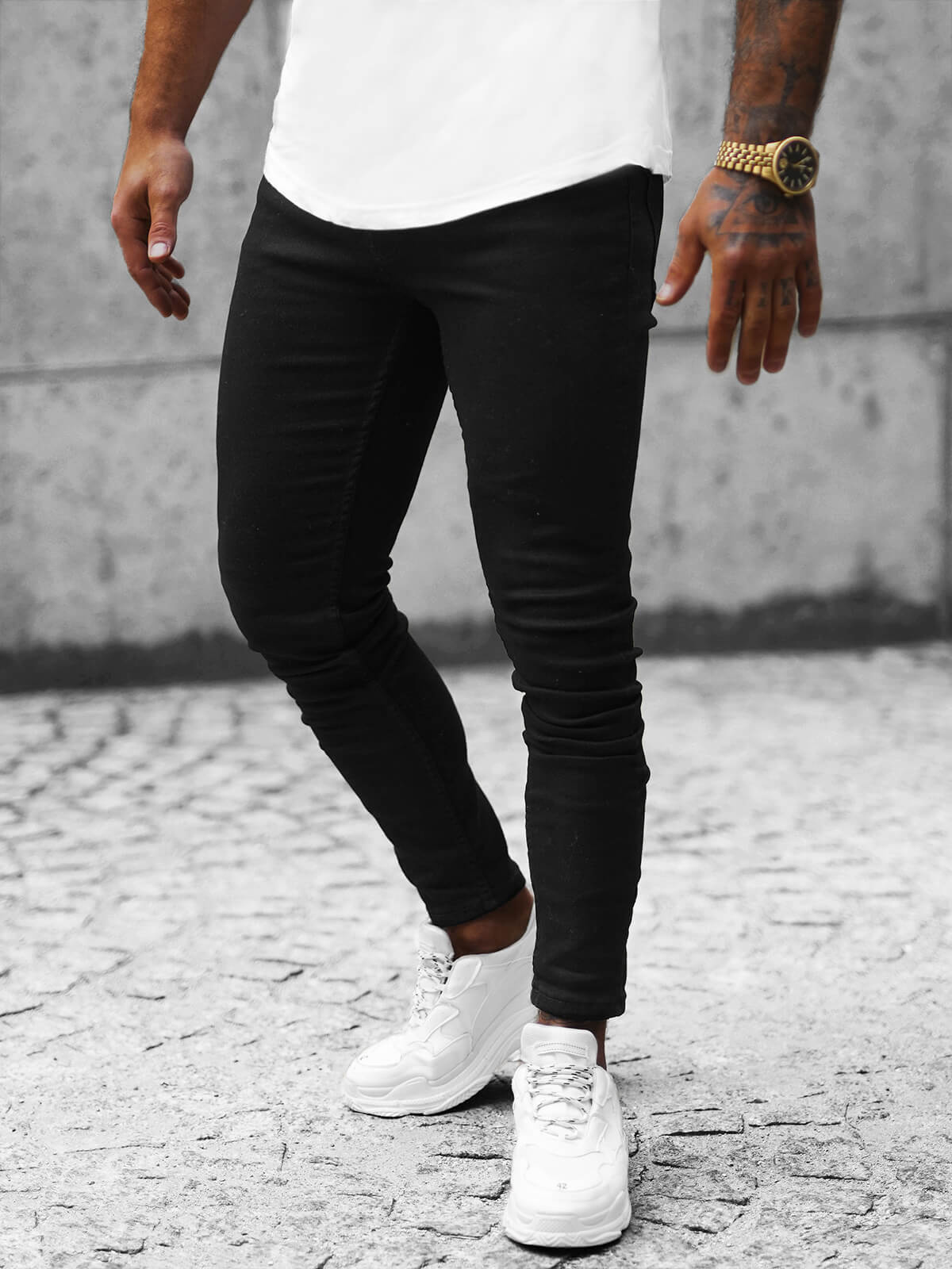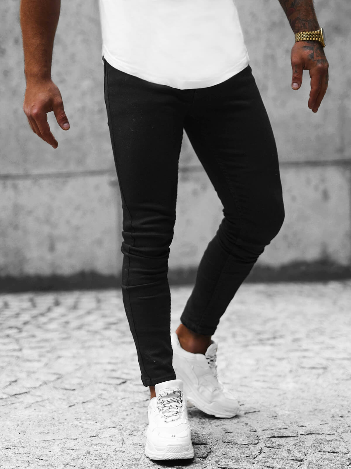 - Materiál: 98% bavlna, 2% elastan, Na modelu (182 cm, 87 kg) je velikost 33.