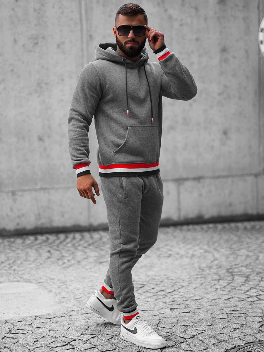 Súprava pochádza z našej najnovšej kolekcie. Skladá sa z dvoch prvkov. Sú to mikiny s kapucňou a manžetami a nohavice s vreckami na bokoch a manžetách. Súprava je vyrobená z bavlny a polyesteru, vďaka čomu sa pohodlne nosí, je príjemná na dotyk, nekrčí sa, časom sa nerozťahuje a neobmedzuje v pohybe.
