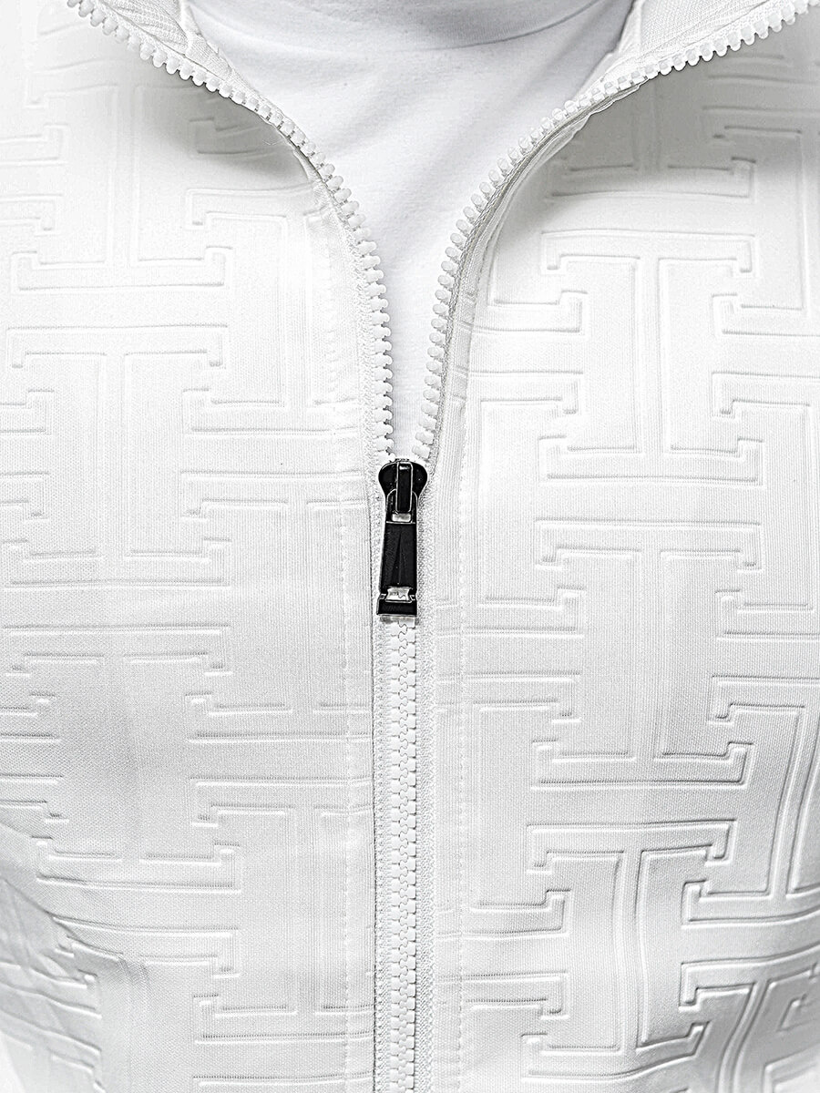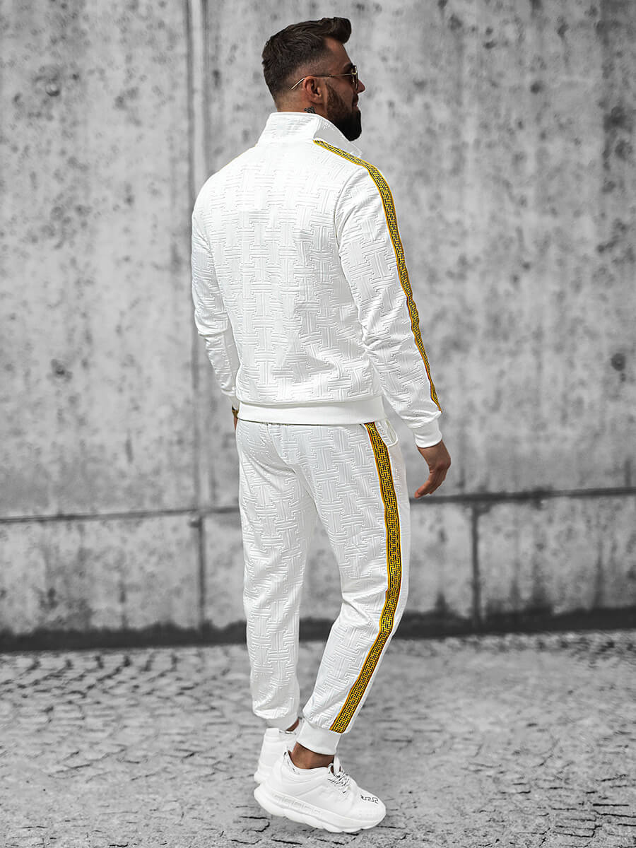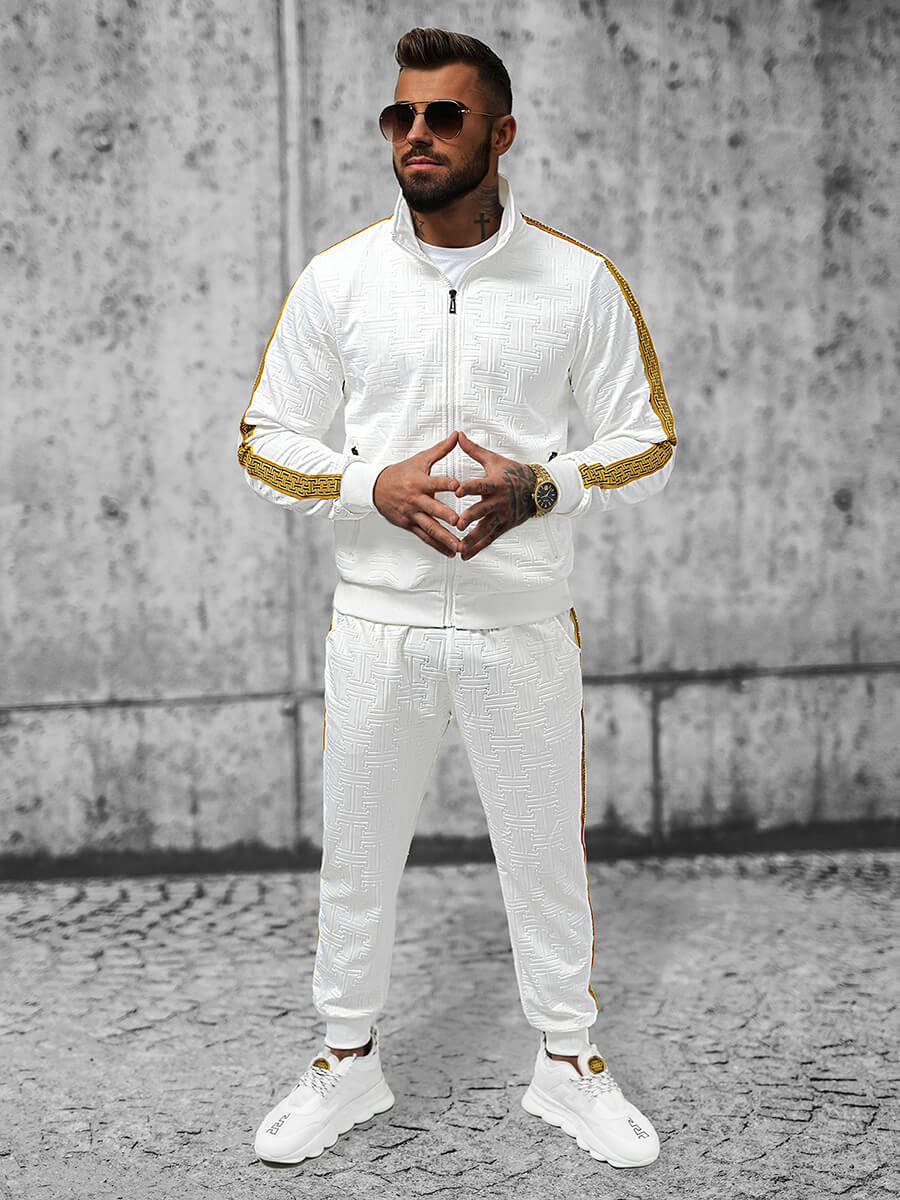 Súprava z najnovšej kolekcie. Skladá sa z dvoch prvkov. Sú to mikina na zips s lemami a kontrastnými lemami a nohavice s lemami a kontrastnými lemami. Vyrobená z kvalitného polyesteru s prímesou elastanu, vďaka čomu krásne sedí na postave, nekrčí sa, rýchlo schne a je odolná proti zafarbeniu.