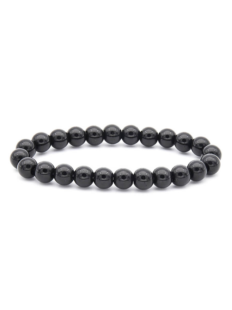 Náramok pochádza z najnovšej kolekcie nášho internetového obchodu. Skladá sa z okrúhlych, čiernych korálok vyrobených z kvalitného plastu a umiestnených na pružnom, trvácnom vlasci odolnom proti roztrhnutiu, ktorý priľne k zápästiu.