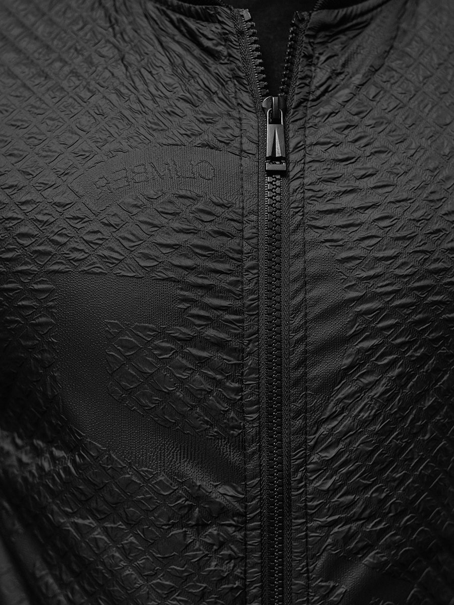 Bunda z najnovšej kolekcie. Zapínanie na zips. Spodná časť a rukávy sú zakončené lemami, ktoré dodávajú športový charakter. Bunda má po stranách vrecká na zips a vo vnútri vrecko, kam si môžete odložiť telefón, peňaženku, kľúče alebo iné potrebné drobnosti. Vyrobená z kvalitného polyesteru, vďaka ktorému krásne sedí na postave, nekrčí sa, rýchlo schne a je odolná voči škvrnám.