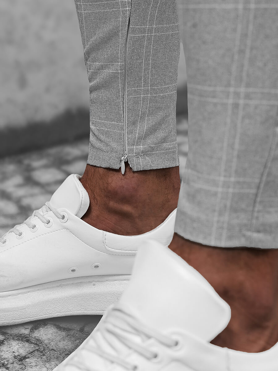 Predstavujeme vám jedinečné pánske nohavice typu chino od značky Ozonee, model DJ/550171 z najnovšej kolekcie. Tieto nohavice upútajú pozornosť vďaka modernému kockovanému vzoru, zipsom na nohaviciach a ozdobnému, odnímateľnému reťazcu. Sú ideálne pre rôzne príležitosti - od neformálnych stretnutí s priateľmi, cez každodenné vychádzky do mesta, až po elegantné večierky.