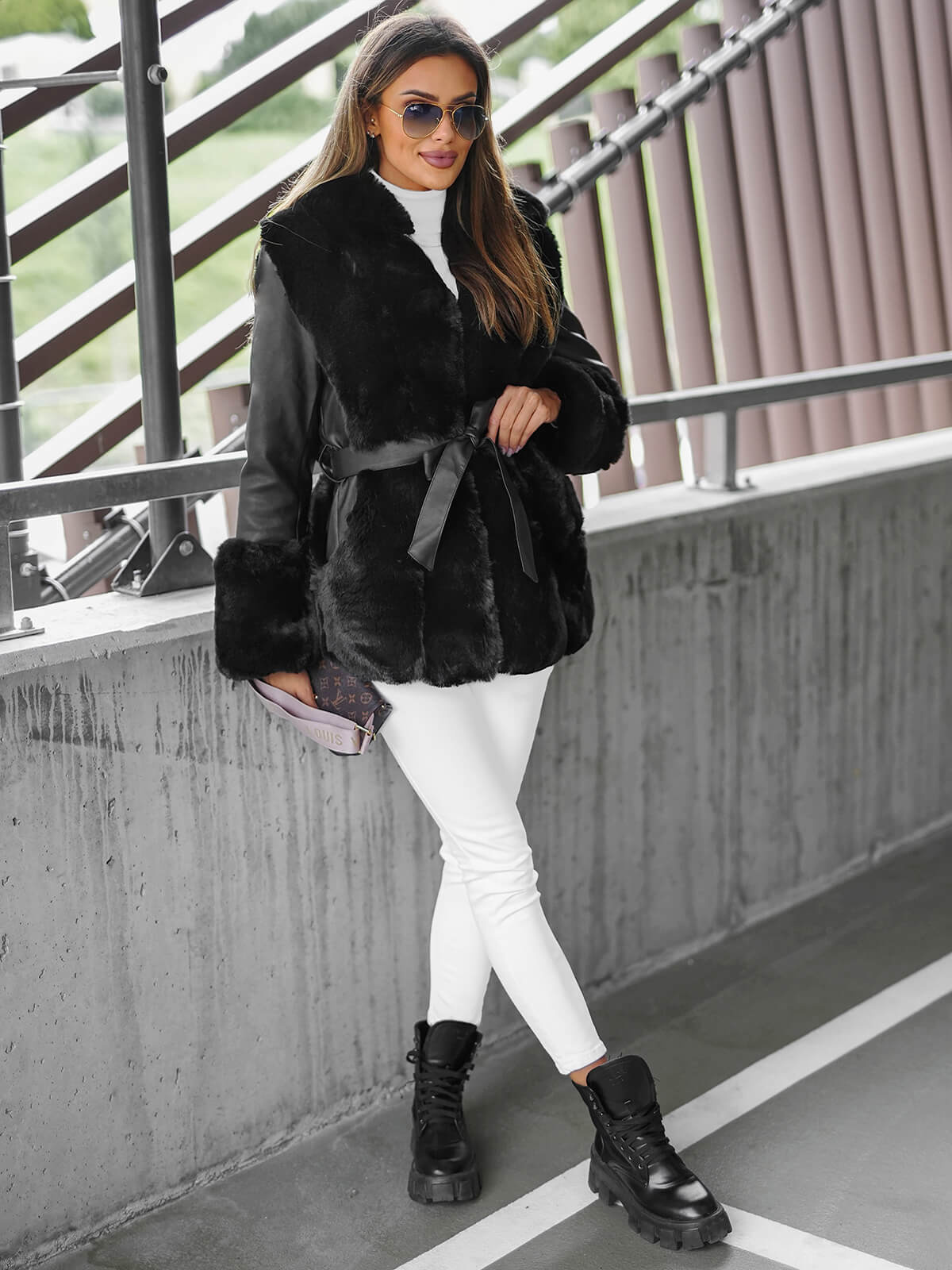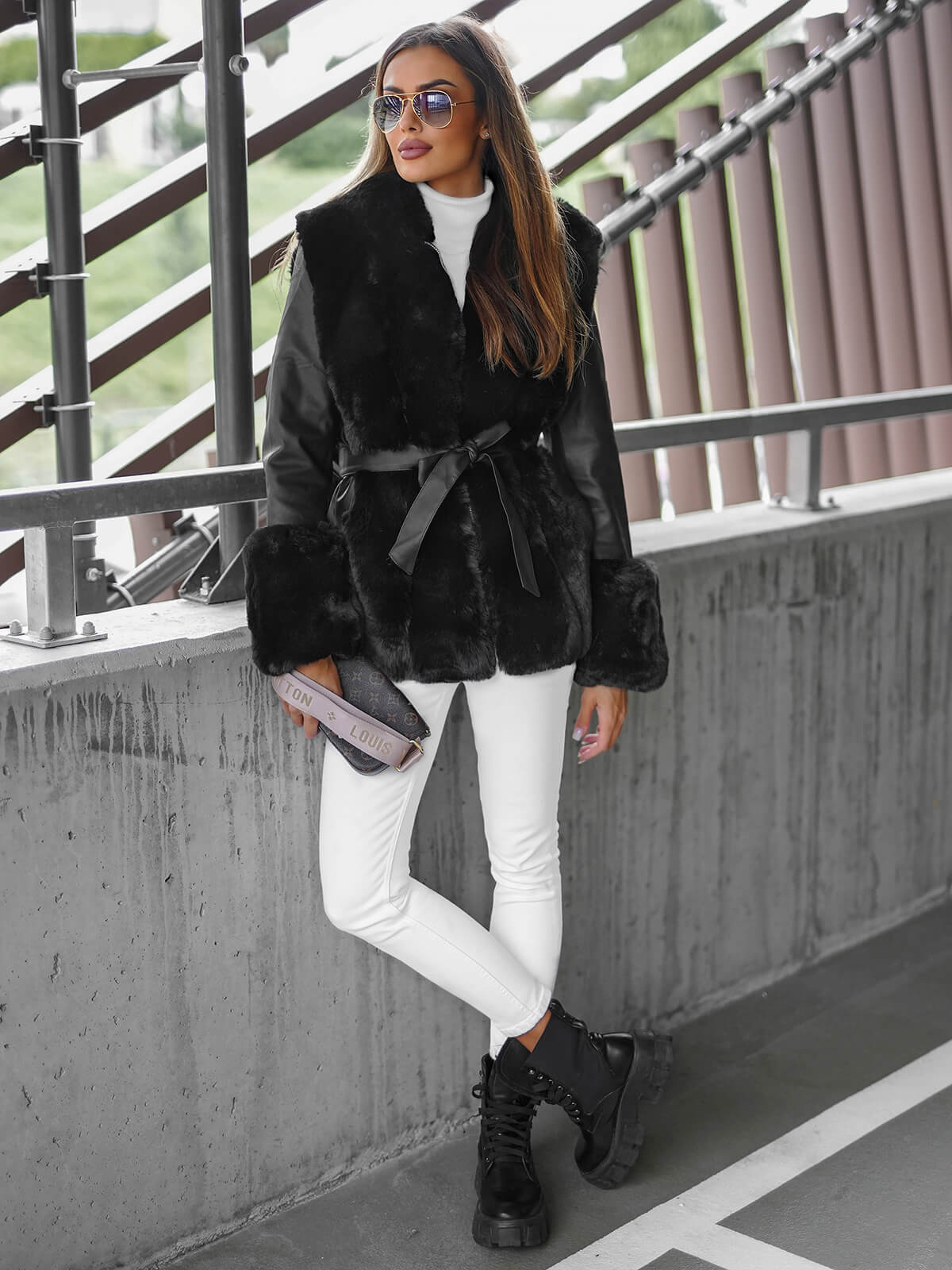 Táto dámska bunda je ideálna pre chladné zimné dni a dodá vašim outfitom nádych elegancie. Dizajn s imitáciou kože a umelou kožušinou umožňuje kombinovať ju s rôznymi štýlmi oblečenia, či už ide o ležérne alebo elegantnejšie oblečenie. Môžete ju nosiť s džínsmi, nohavicami chino alebo jednoduchou sukňou.
