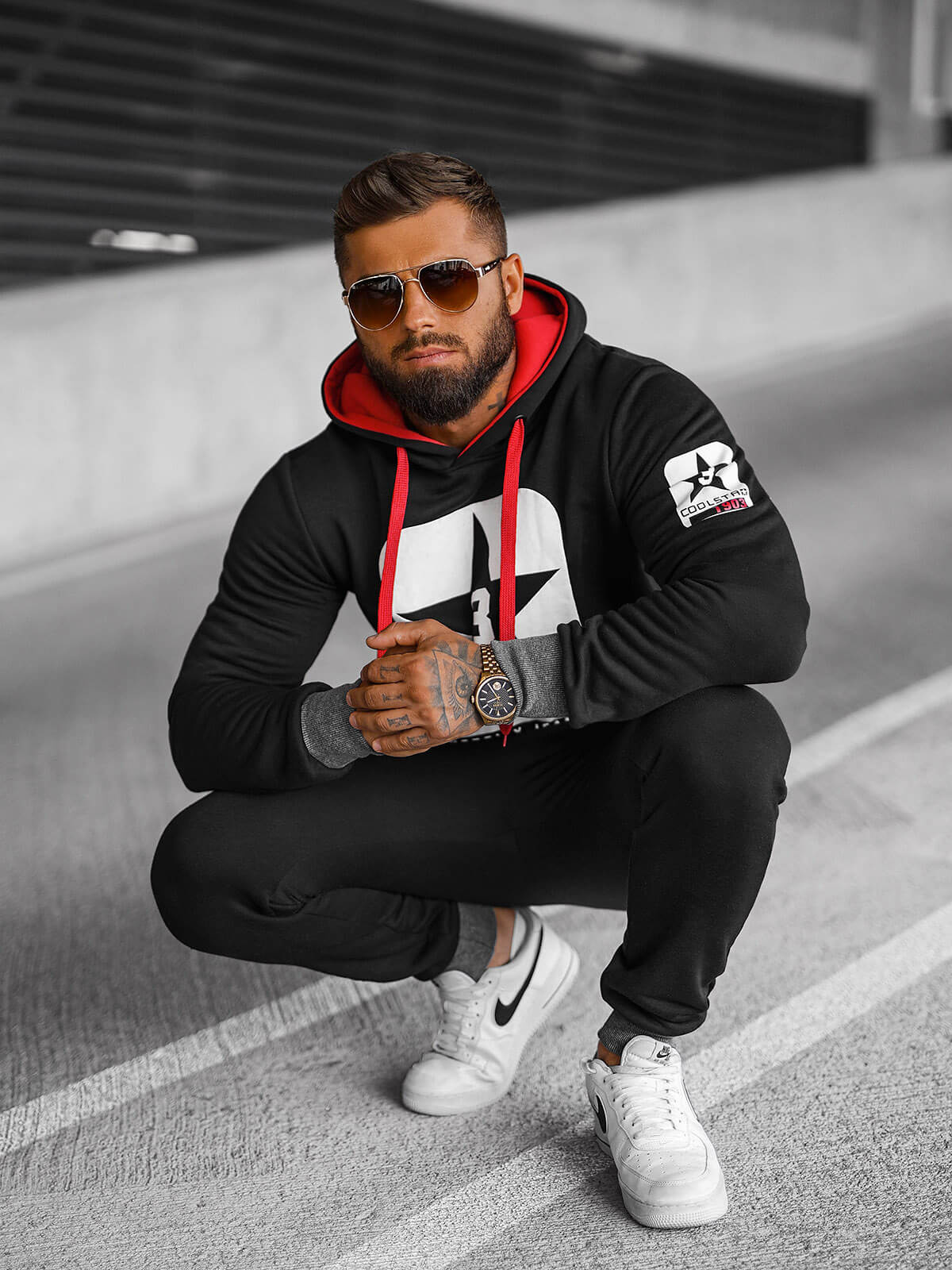 Mikina s kapucňou a nohavice s bočnými vreckami sú nielen praktické, ale celkovému vzhľadu dodávajú aj charakter. Ukončené manžetami mikina aj nohavice majú perfektný strih, ktorý podčiarkuje mužský štýl.