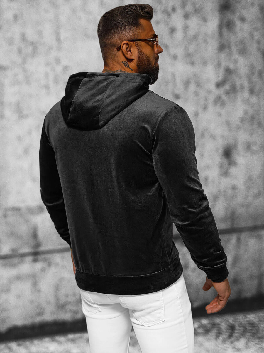 Pánska velúrová mikina s kapucňou čierna OZONEE JS/8B1168/3 - štýl a pohodlie v jednom