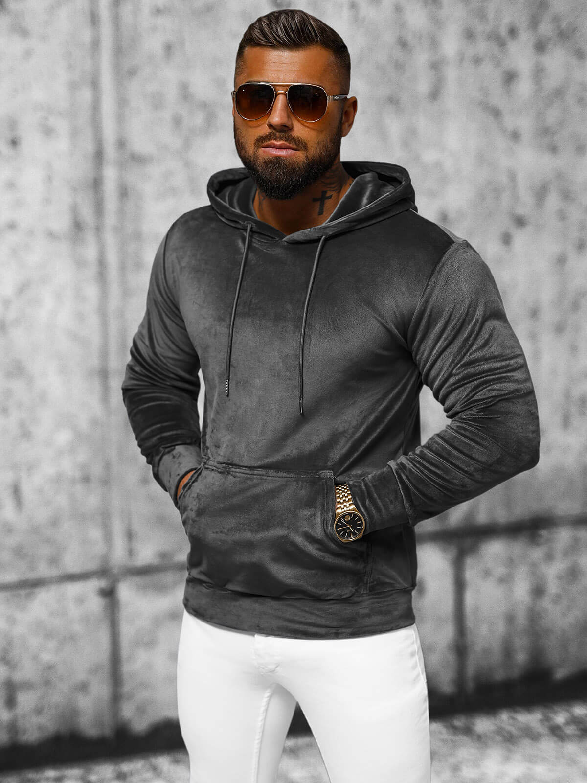 Pánska grafitová velúrová mikina s kapucňou OZONEE JS/8B1170/6 - ideálna na každú príležitosť