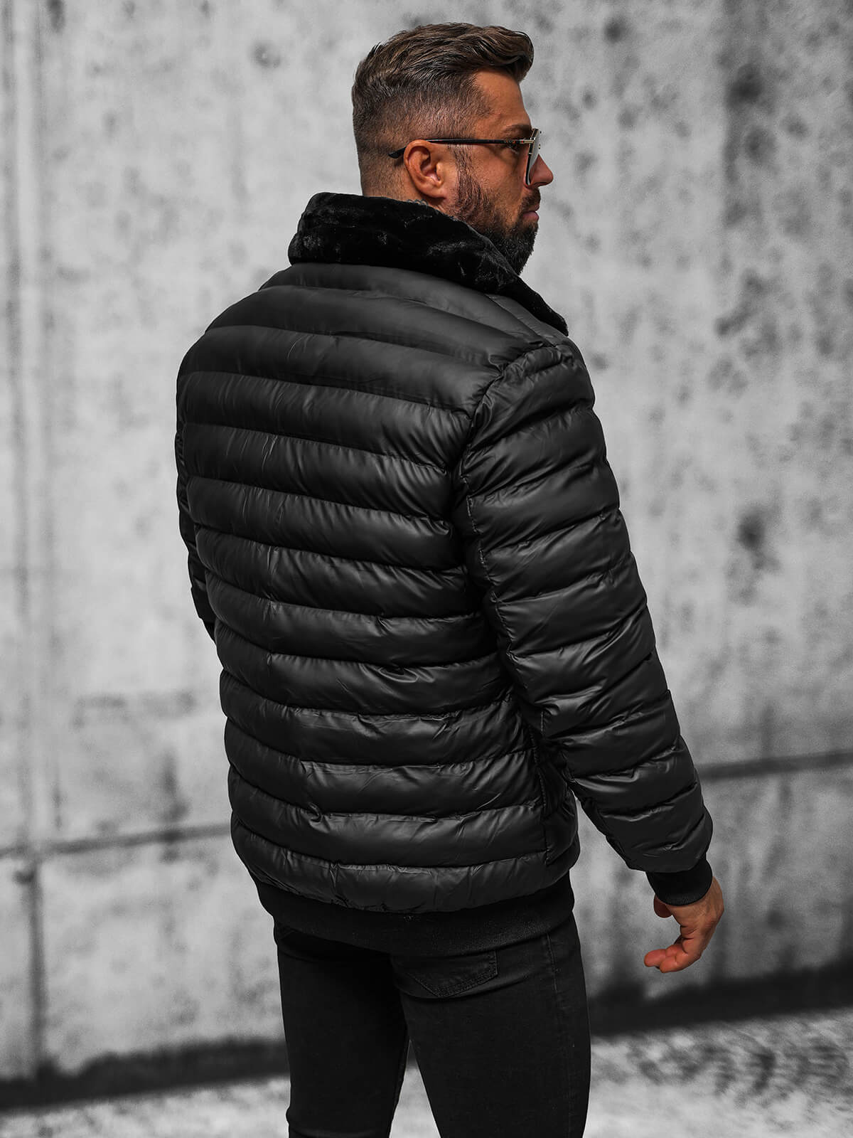 Moderná elegancia a mestský štýl - pánska prešívaná bunda čierna OZONEE JS/31M5012