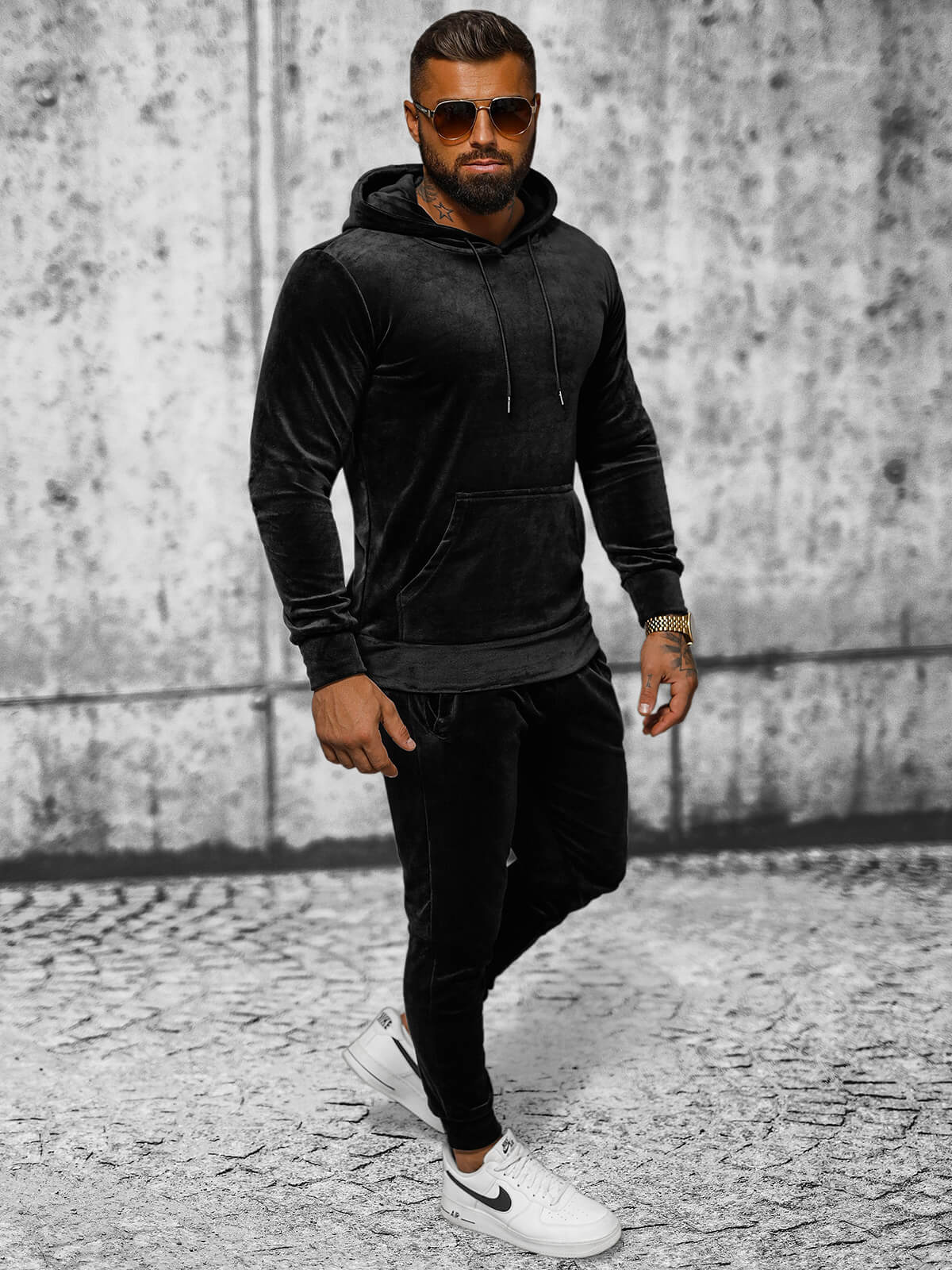 Pánska čierna velúrová tepláková súprava OZONEE JS/8C1171/3 - pohodlie a štýl v jednom