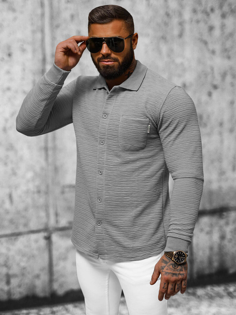 Štýl a pohodlie v jednom - Pánska mikina s golierom sivá OZONEE O/TB2262
