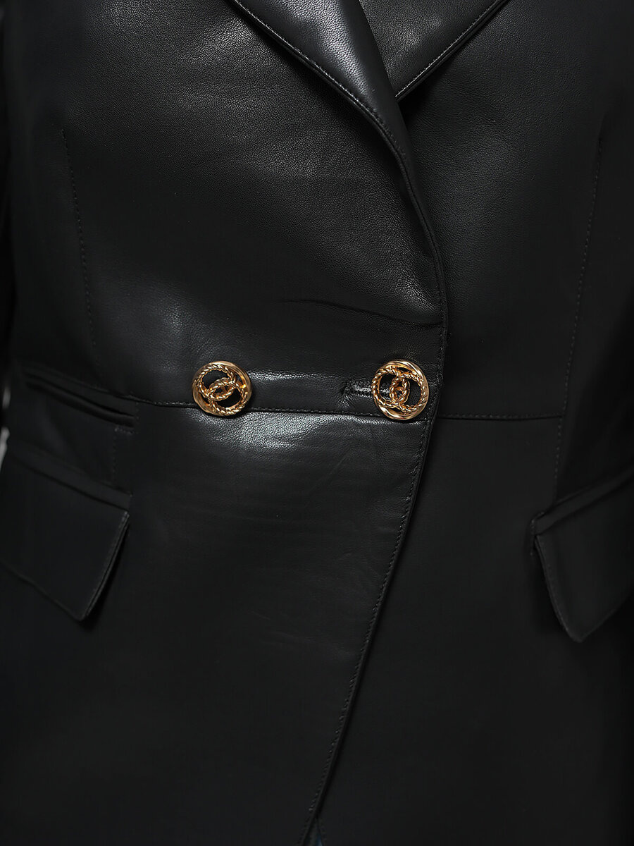 Dámska Kožená Bunda Čierna OZONEE JS/11Z8121