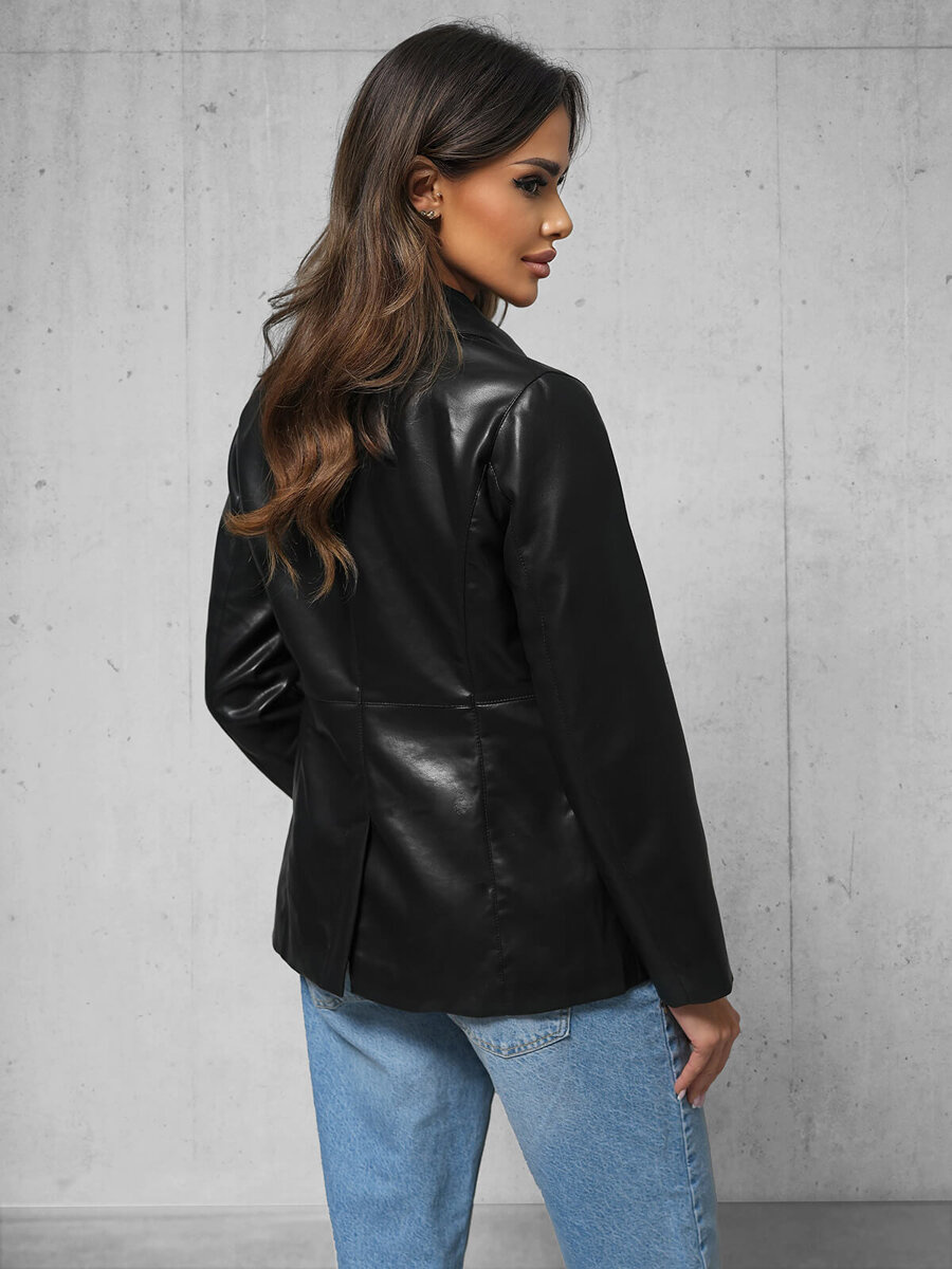 Dámska kožená bunda čierna OZONEE JS/11Z8121 - elegancia spĺňa pohodlie