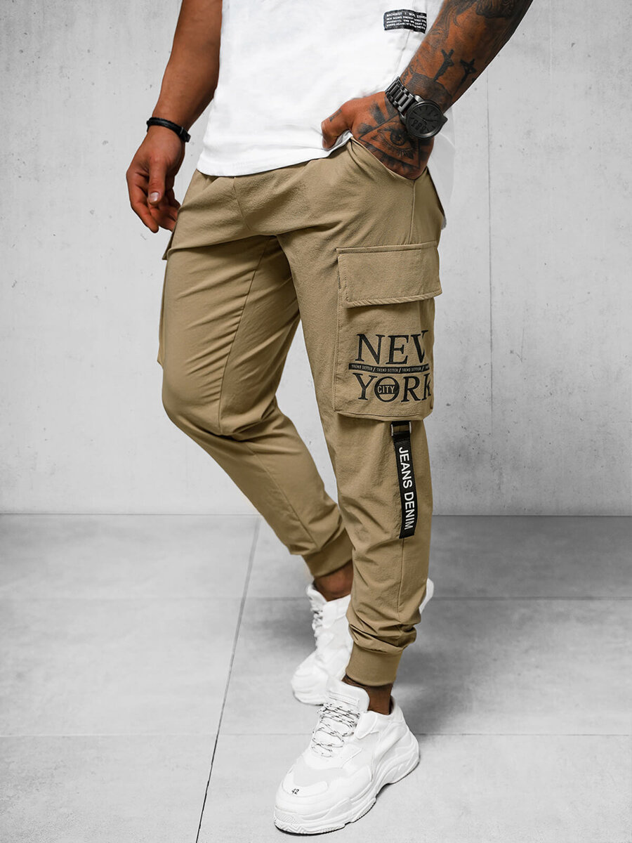 Pánske Chino Nohavice Tmavo-Béžové OZONEE O/PS5516