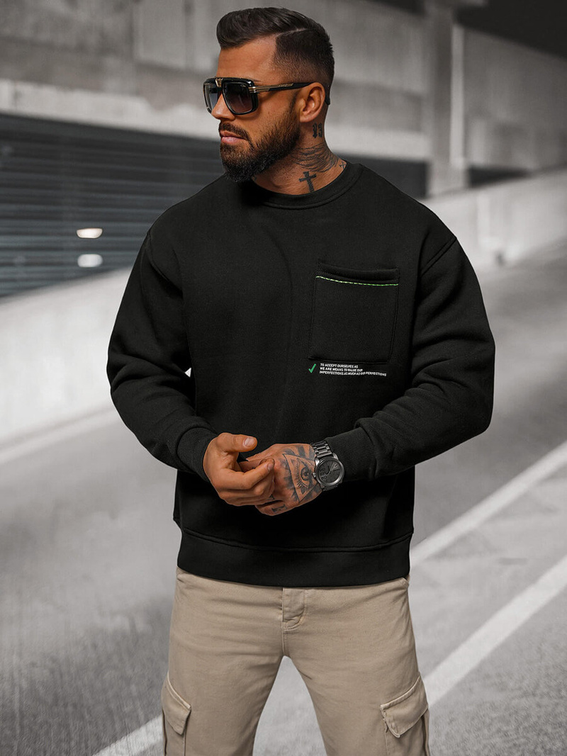Pánska oversize mikina čierna OZONEE O/SWE23034 - módny doplnok vášho šatníka