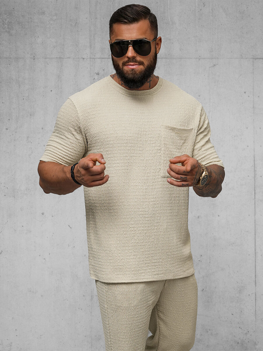 Výnimočný štýl a pohodlie - béžové pánske tričko OZONEE O/Y960T