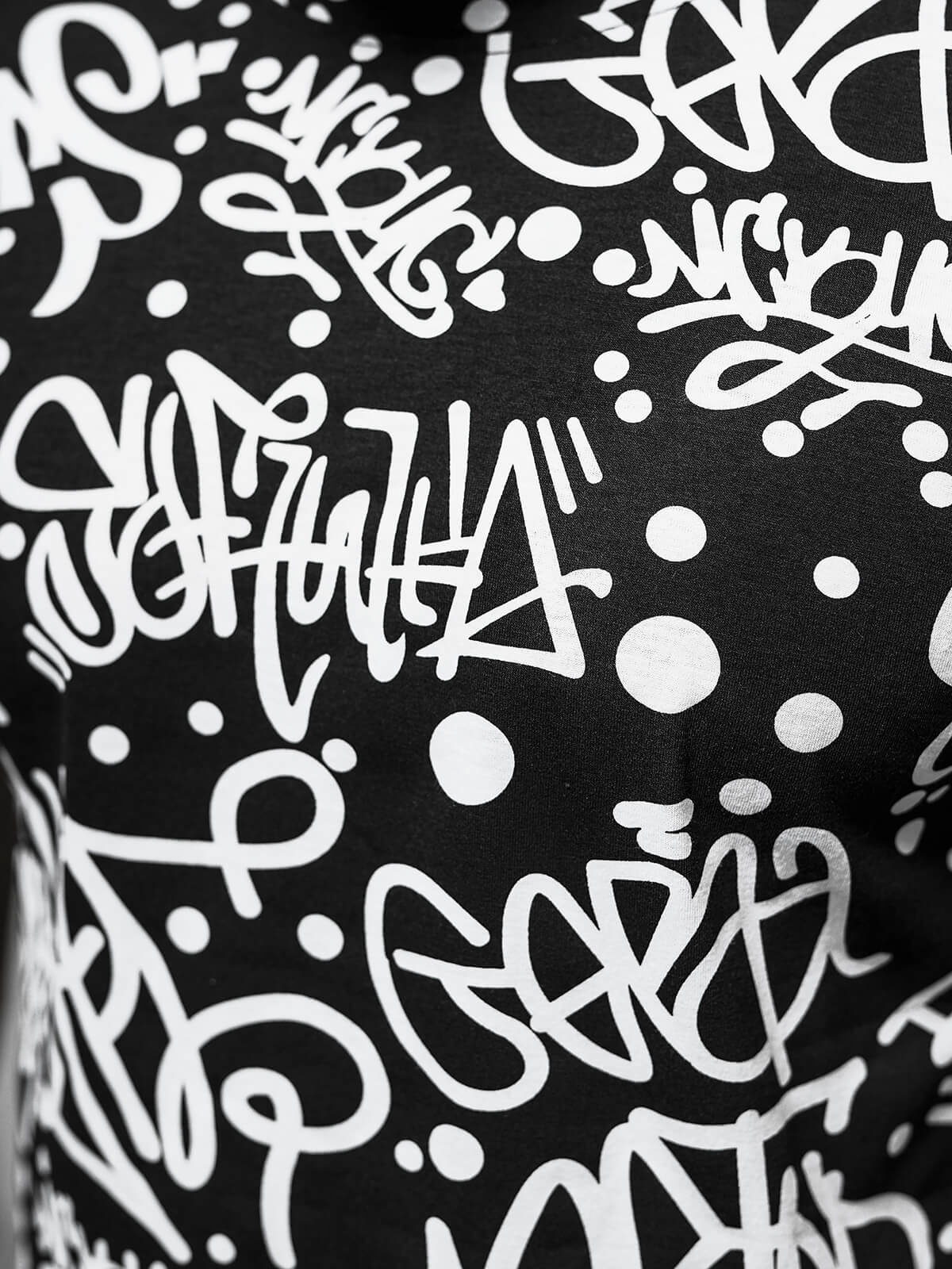 Módna potlač na prednej a zadnej strane, Prilieha tesne k telu, Vyrobené z príjemného úpletu
