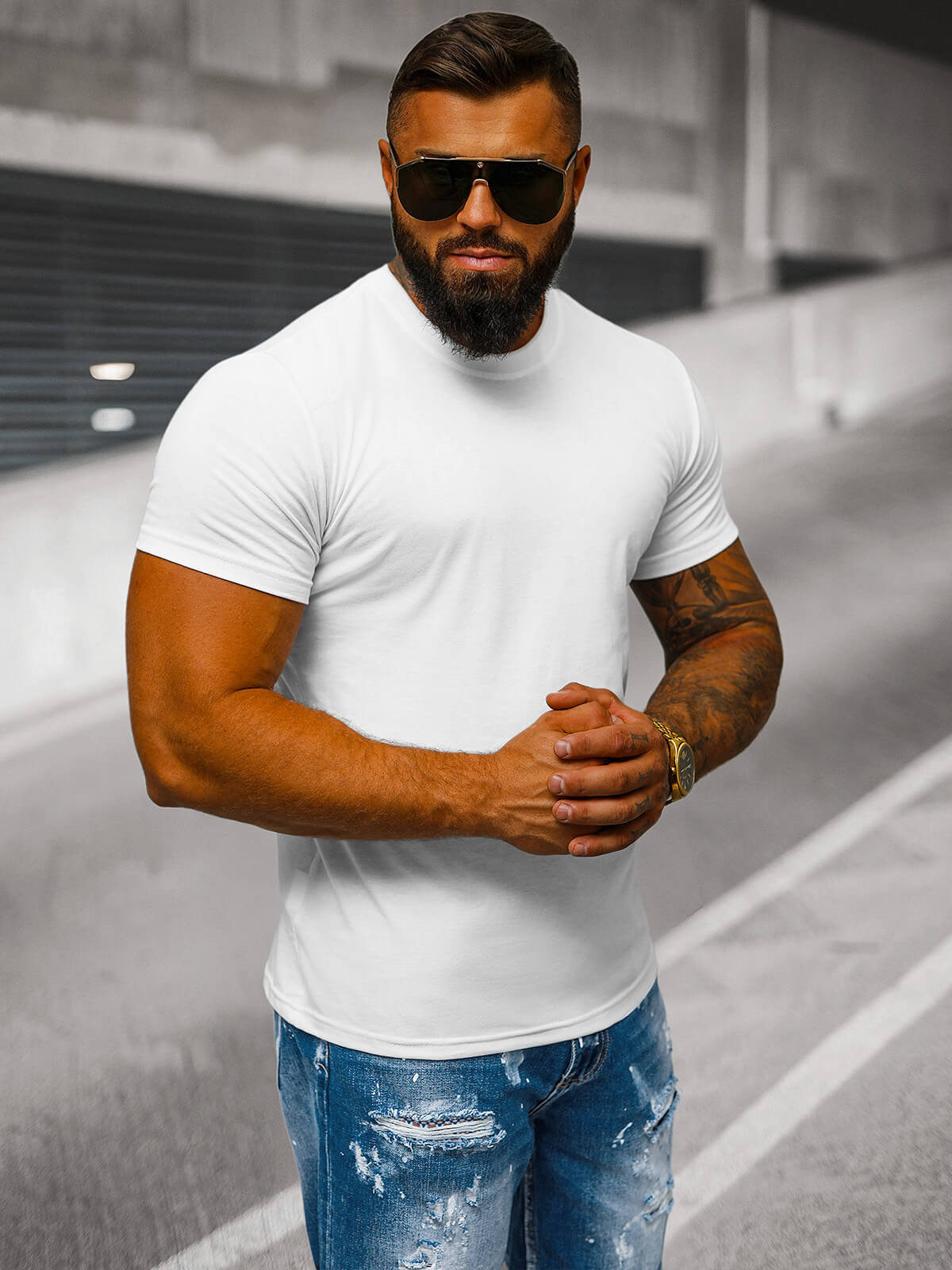 Pánske biele tričko bez potlače OZONEE JS/712005Z - Zvýraznite svoj štýl