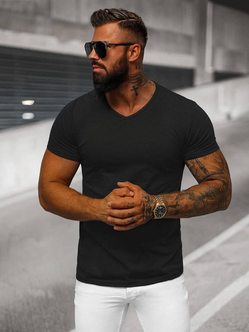 Predkladané pánske tričko bez potlače čierne OZONEE JS/712007Z je esenciou pánskeho štýlu a pohodlia. Je vyrobené z príjemného úpletu, ktorý zaručuje jedinečný pocit mäkkosti a pohodlia pri nosení. Má výstrih do V, ktorý mu dodáva nádych elegancie a modernosti. Je súčasťou najnovšej kolekcie a zodpovedá súčasným pánskym módnym trendom.