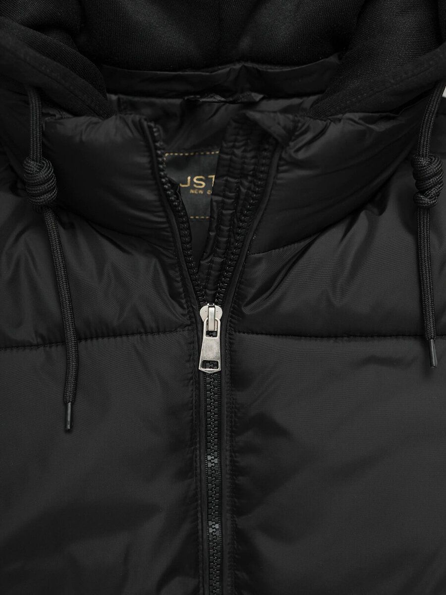 Model z najnovšej kolekcie, zapínanie na zips, odnímateľná kapucňa imitujúca mikinu, módne prešívanie, vrecká na bokoch, rebrované manžety