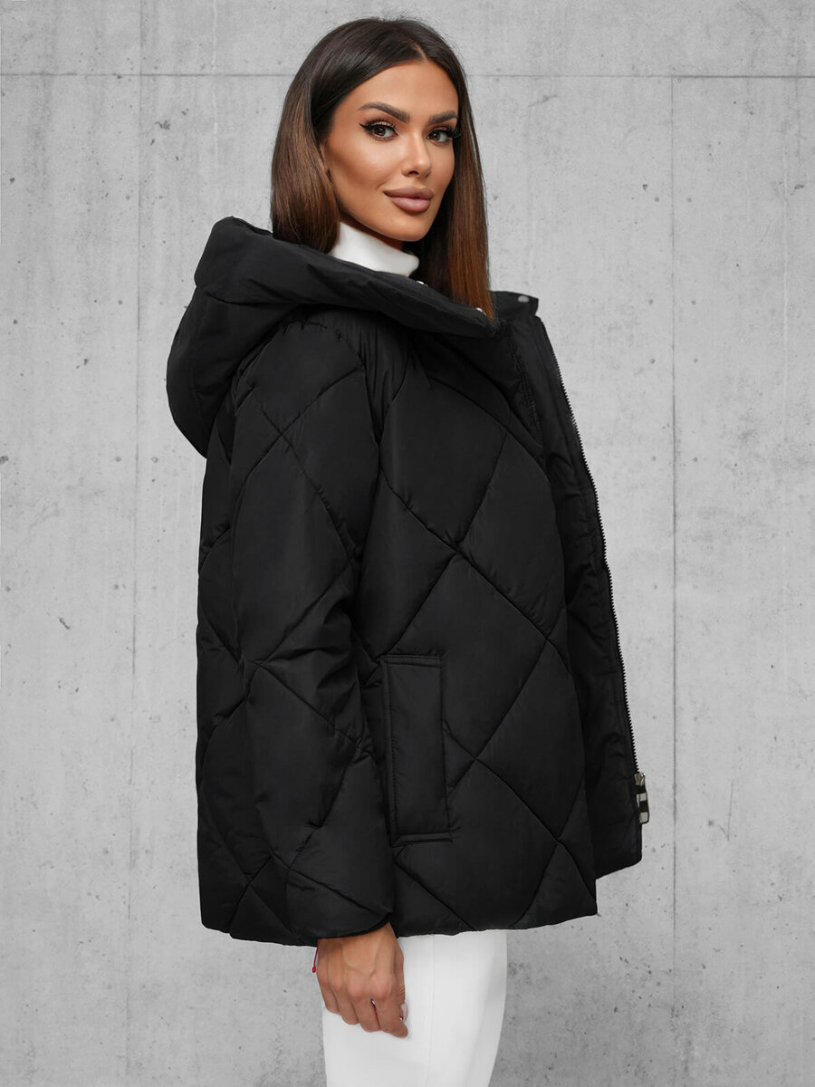 Moderná a štýlová dámska prešívaná zimná bunda čierna OZONEE JS/5M3175/392