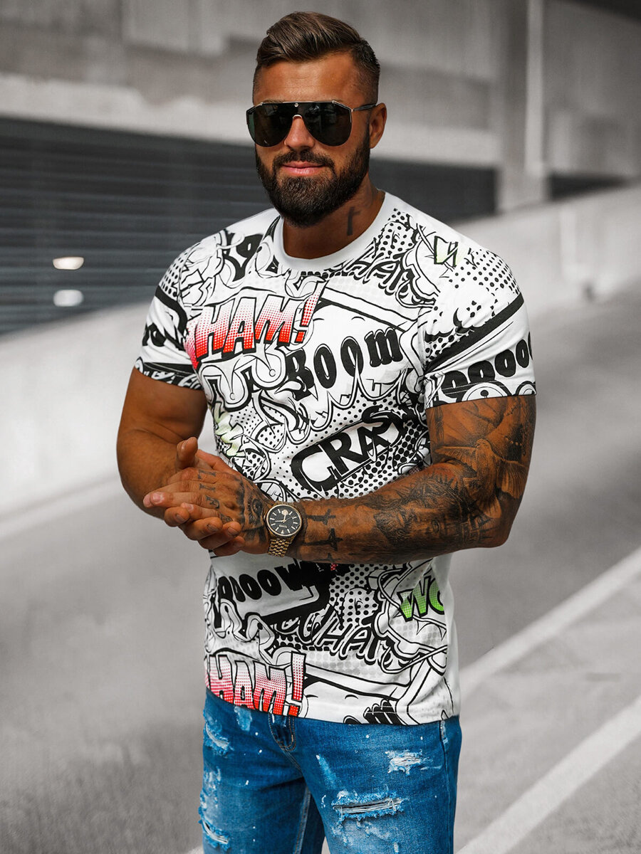 Oblečením takéhoto trička s komiksovým potlačou sa efektívne odlišíte od ostatných. Naše tričko oživí každý ležérny outfit. Môžete si ho obliecť na stretnutie s priateľmi, párty alebo koncert. S pomocou trička vytvoríte mnoho módných kombinácií. Bude sa veľmi dobre hodit k iným pánskym oblečeniam z našej ponuky. Môžete ho napríklad skombinovať s bundou typu bomber a teplákovými nohavicami.