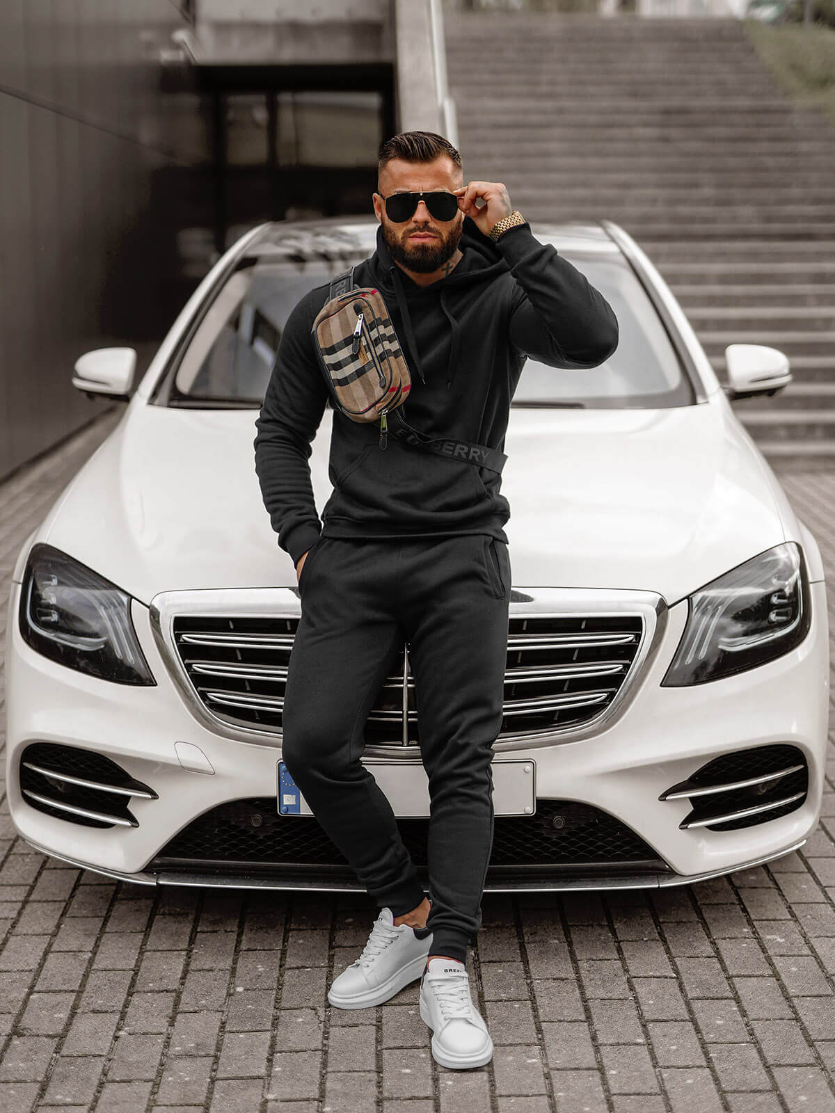 Pánska súprava obsahuje 2 prvky. Jednou z nich je mikina s praktickou kapucňou, ktorá dobre poslúži v chladných dňoch. Súprava obsahuje aj nohavice s vreckami na bokoch, do ktorých schováte potrebné drobnosti, ako je telefón alebo kľúče. Set bol vyrobený z kombinácie bavlny a polyesteru, vďaka čomu sa veľmi príjemne nosí, je príjemný na dotyk a príjemne prilieha k telu.