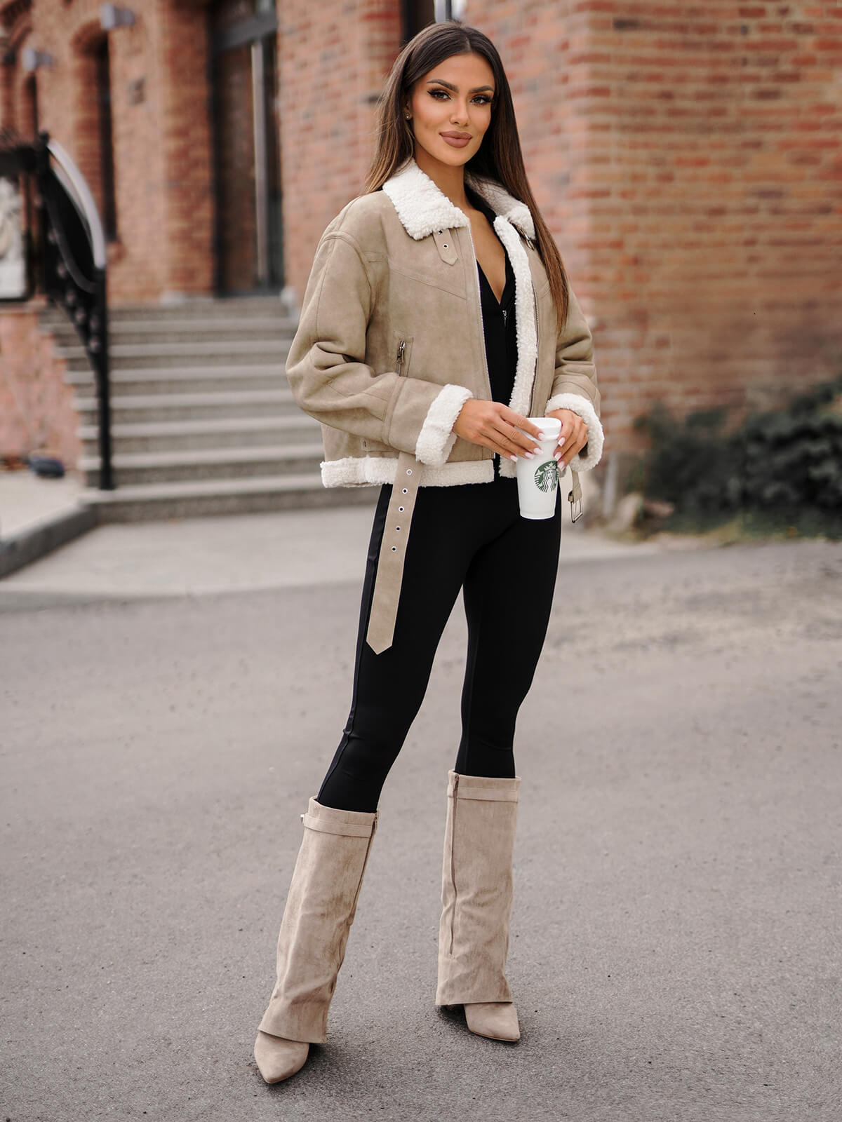 Dámska Kožená Bunda Béžová OZONEE O/81331