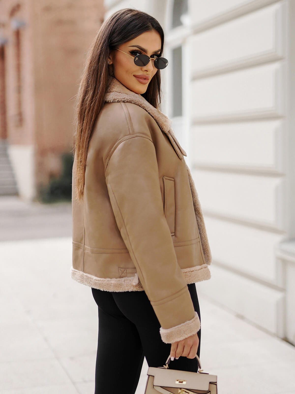 Dámska Kožená Bunda Béžová OZONEE JS/11Z8176