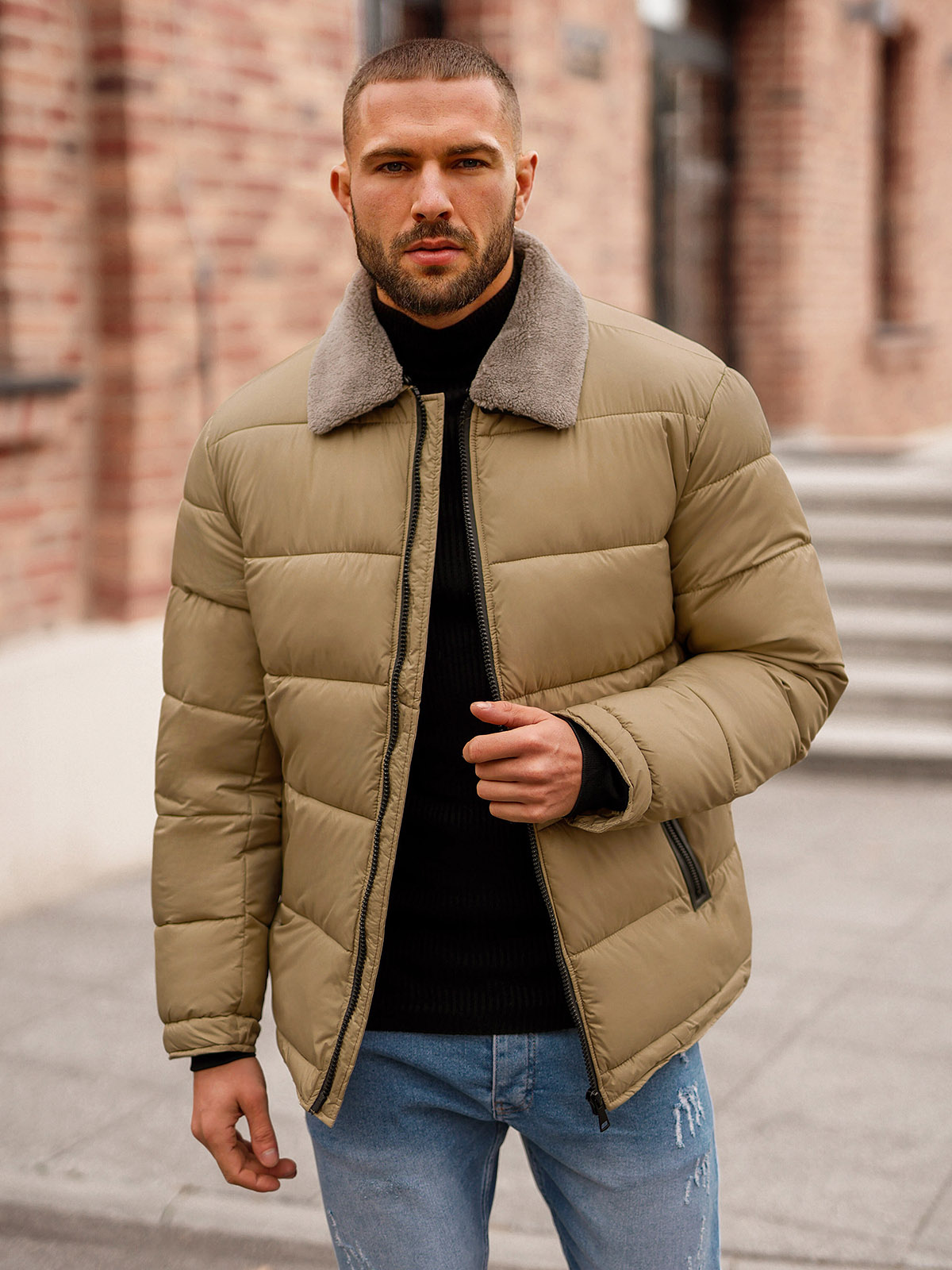 Moderná elegancia v pánskej edícii - Pánska prešívaná béžová bunda OZONEE JS/31M5010