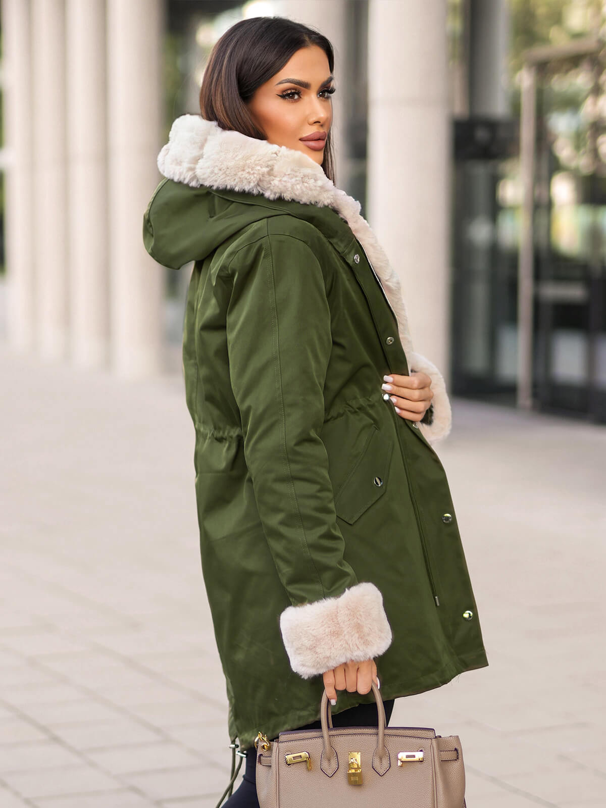 Štýl a pohodlie v jednom - Dámska zimná bunda s kožušinou zelená OZONEE JS/M763/136Z