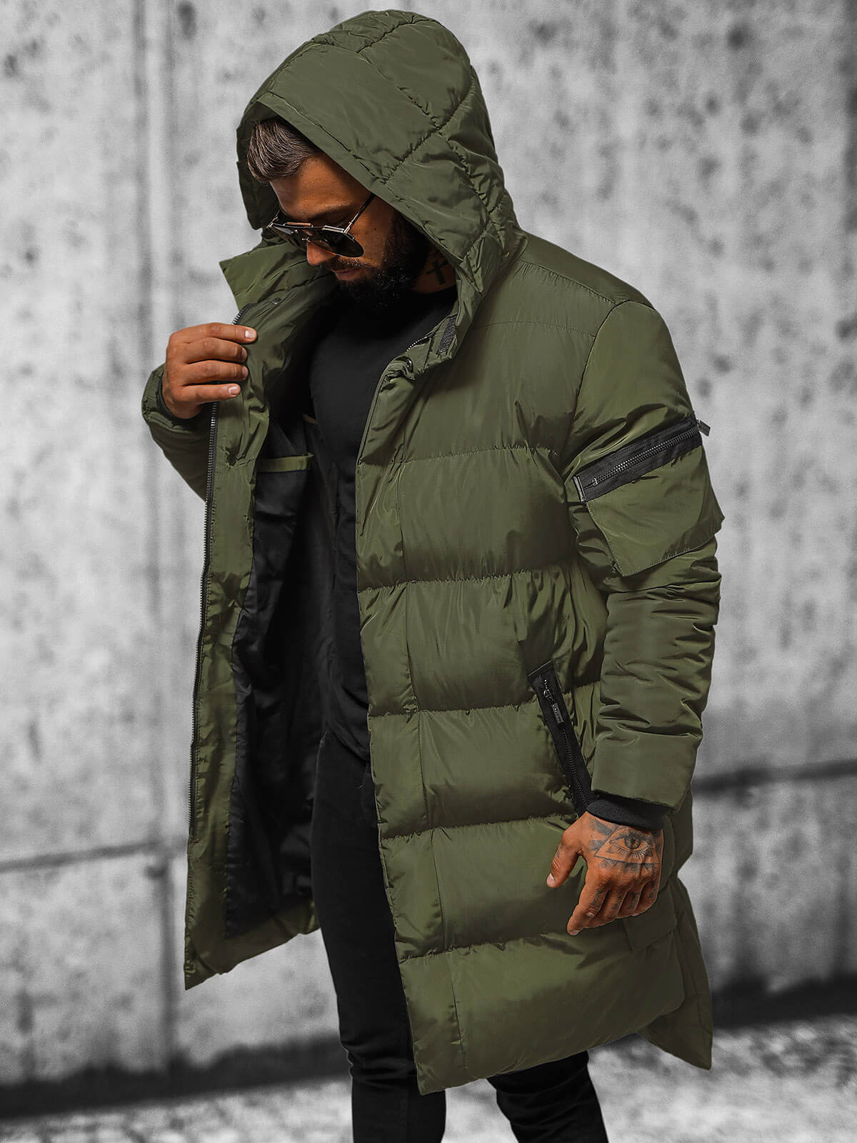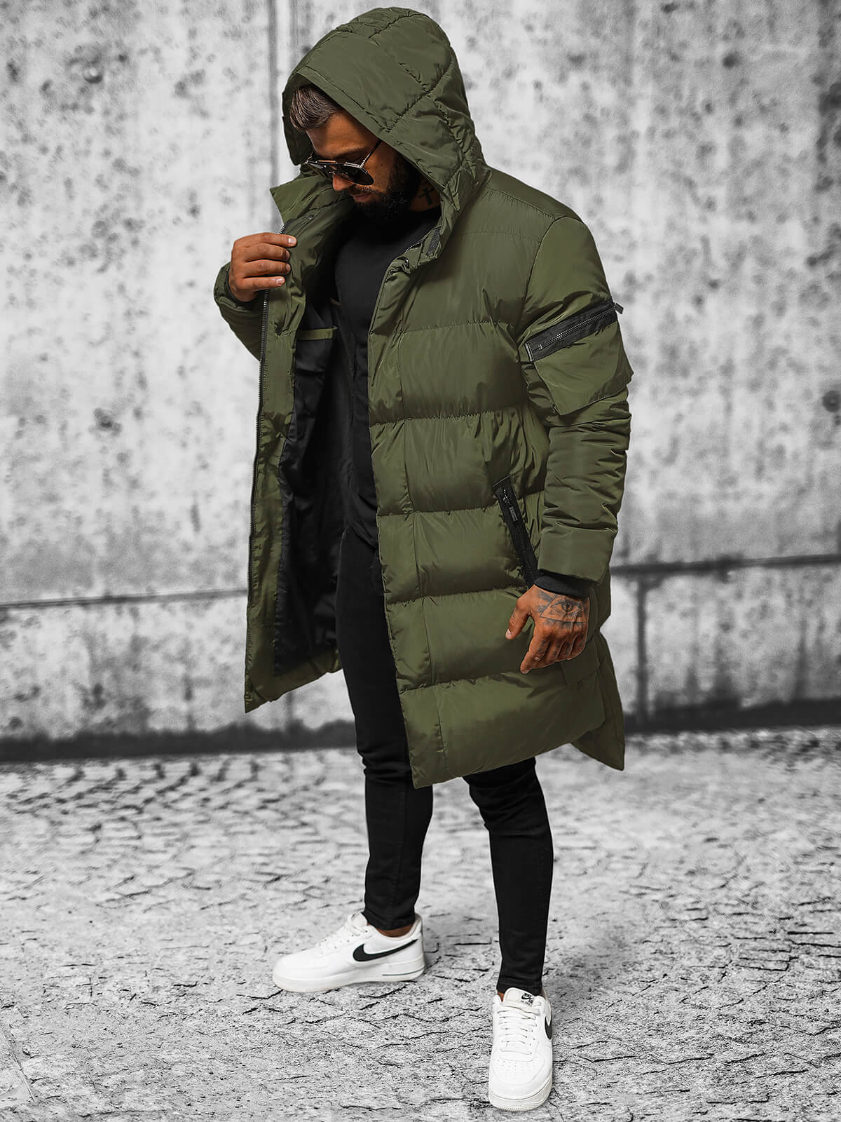 Bunda má prešívanie a dĺžku po kolená. Má praktickú kapucňu, ktorá účinne chráni pred chladom a vetrom. Jej rukávy sú zakončené lemami na ochranu pred chladnými poryvmi. Bunda má po bokoch 2 vrecká na zips, 1 vnútorné vrecko a 1 na rukáve, kam si schováte peňaženku, telefón alebo kľúče. Je vyrobená z polyuretánu a podšívka je z polyesteru. Bunda vďaka tomu pekne sedí na postave, nekrčí sa a rýchlo schne.