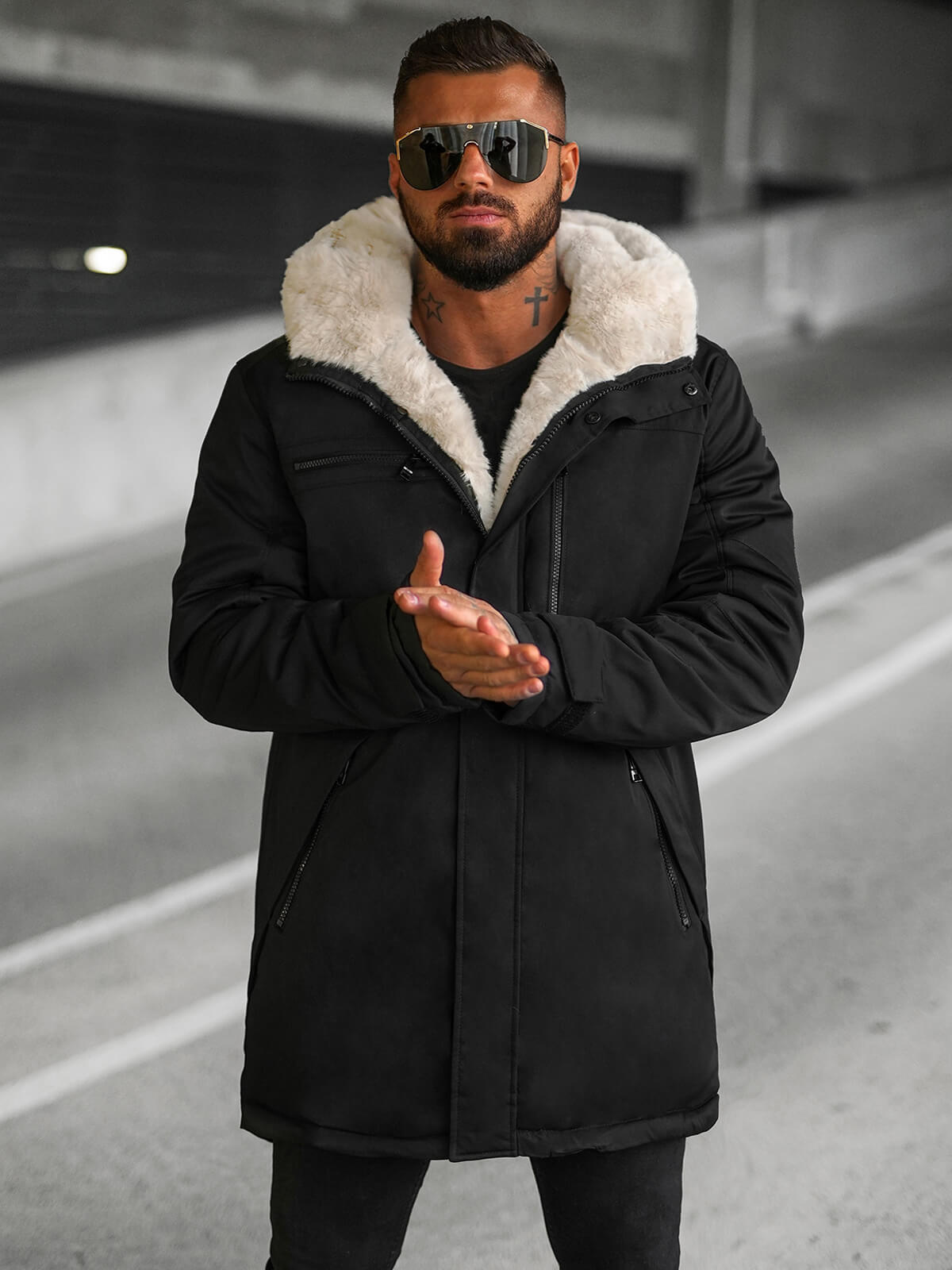 Čierna pánska zimná bunda OZONEE JS/22M317/392 je výbornou voľbou na zimnú sezónu. Je vyrobená z kvalitného materiálu materiálu a poskytuje nielen ochranu pred chladom, ale aj štýlový vzhľad. Bunda má klasický strih, ktorý dokonale zvýrazní mužskú siluetu.