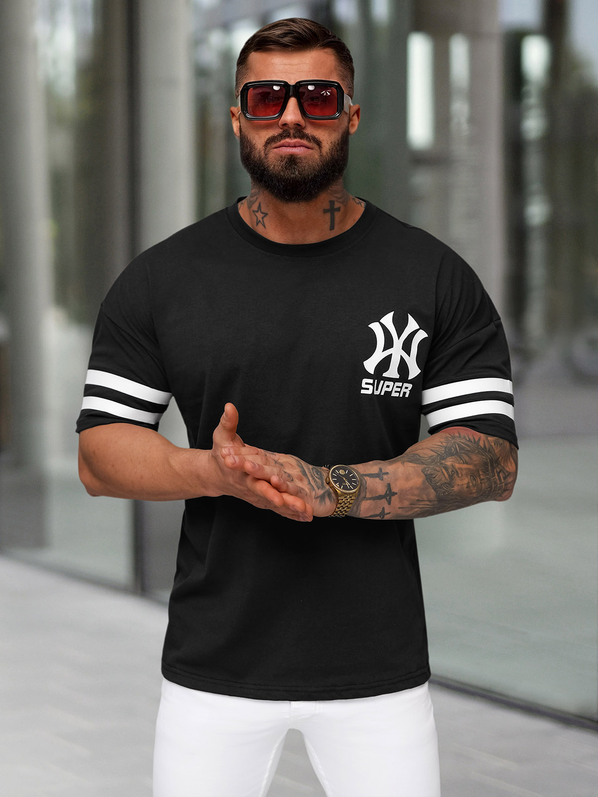 - Materiál: 65% Bavlna, 35% Polyester, Model (182 cm, 87 kg) má na sebě veľkosť L.