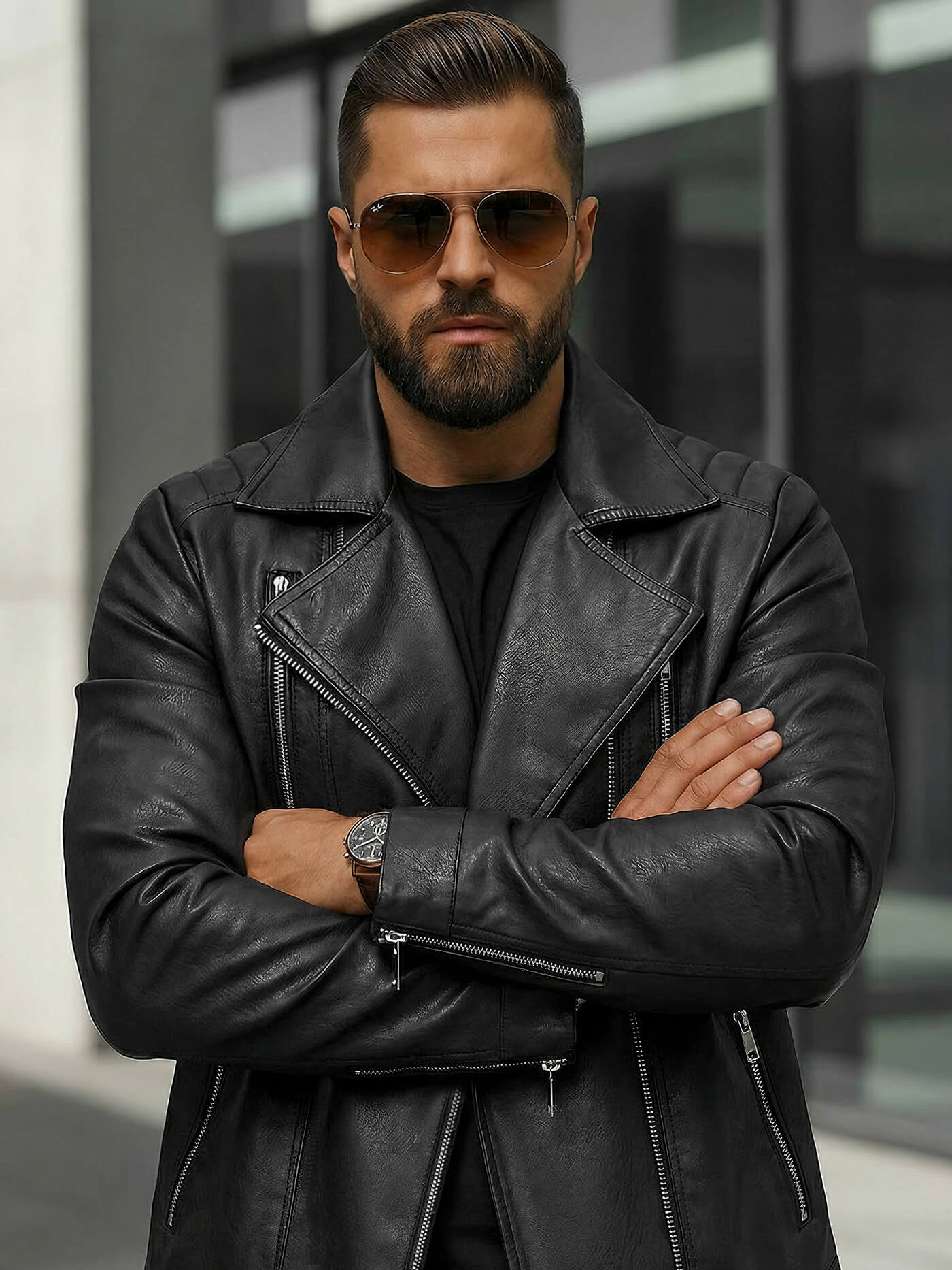 Pánska Koženková Bunda Čierna OZONEE JS/11Z8067Z