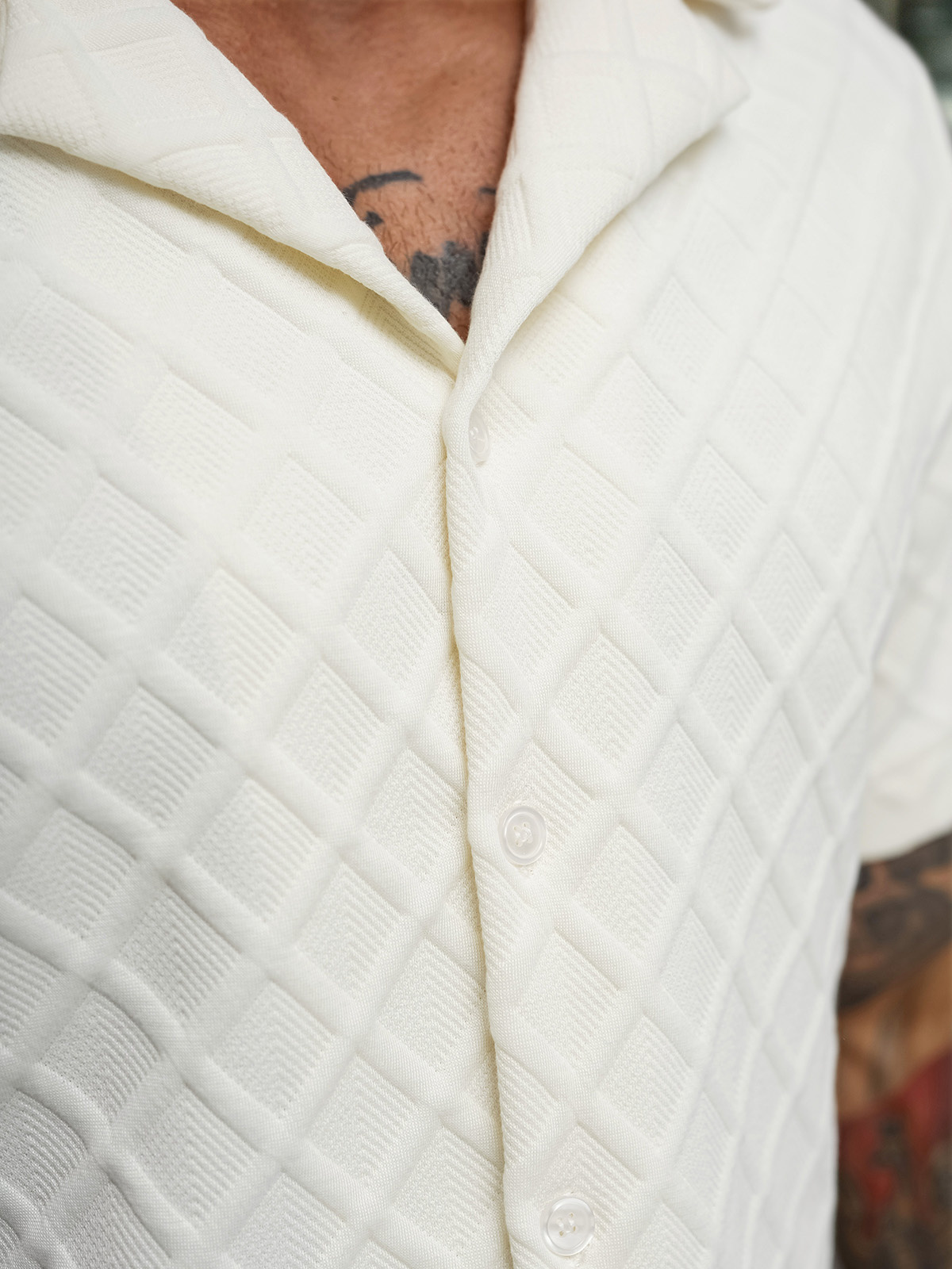 Pánska Košeľa s Krátkym Rukávom Ecru OZONEE O/B2257