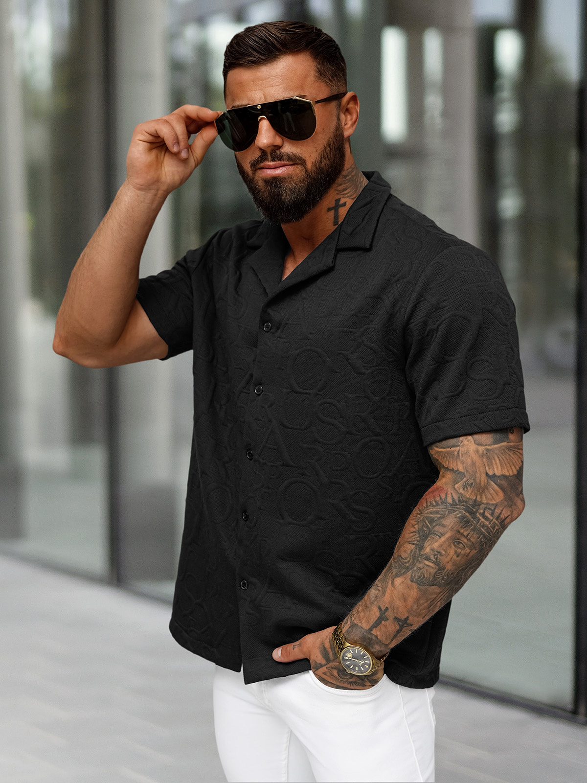 Pánska Košeľa s Krátkym Rukávom Čierna OZONEE O/B2256