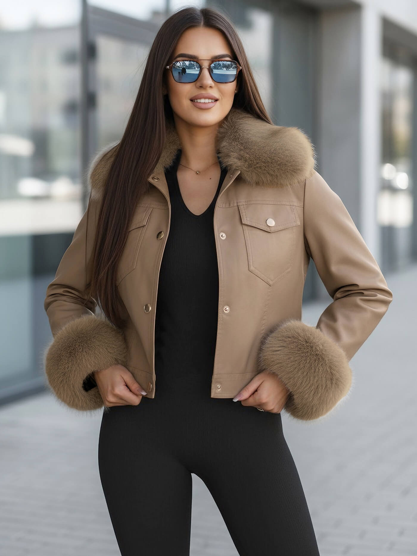 Dámska kožená bunda béžová OZONEE JS/61M8513/84Z
