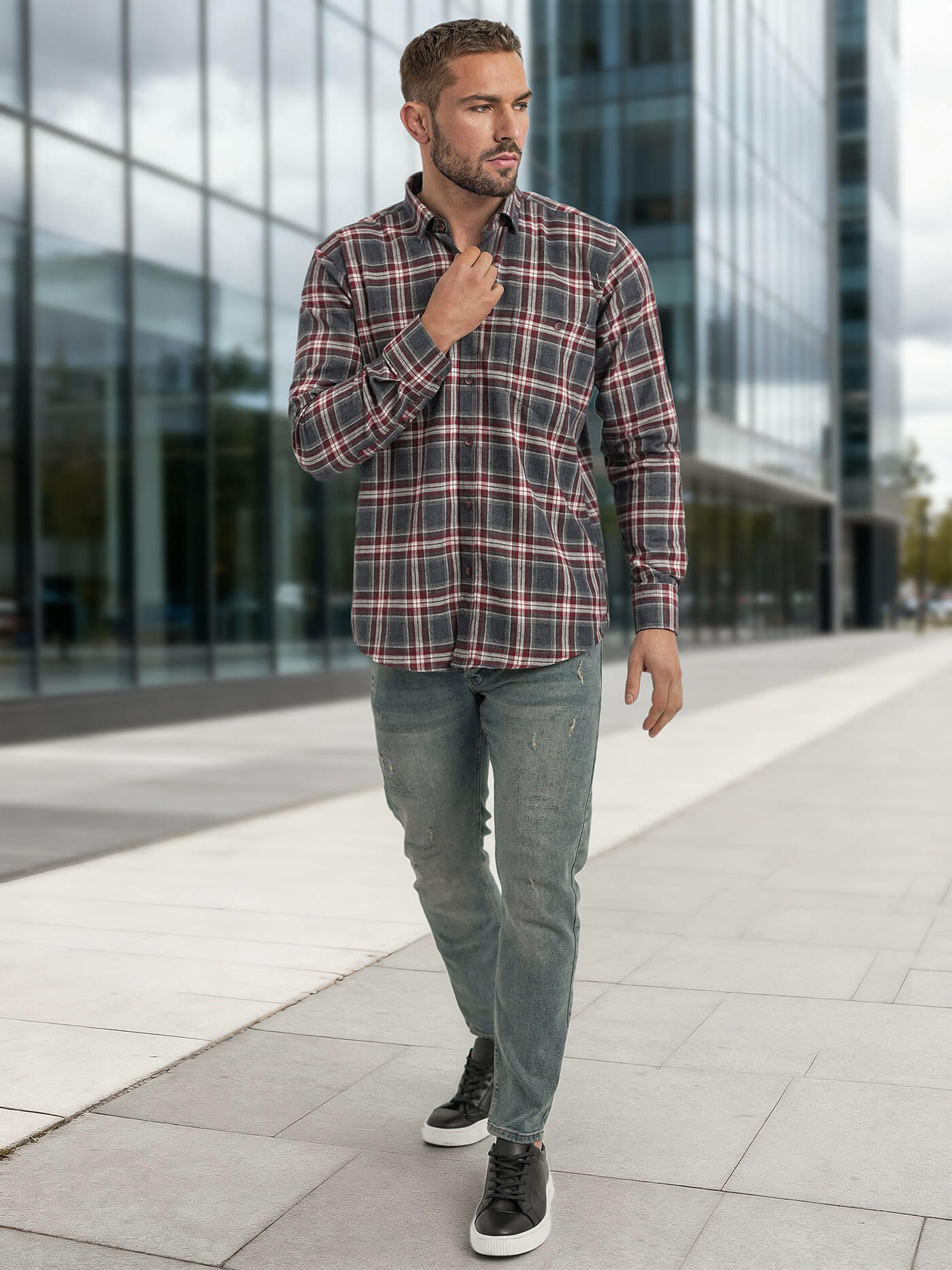 - Pánska košeľa na bežné nosenie s káro vzorom