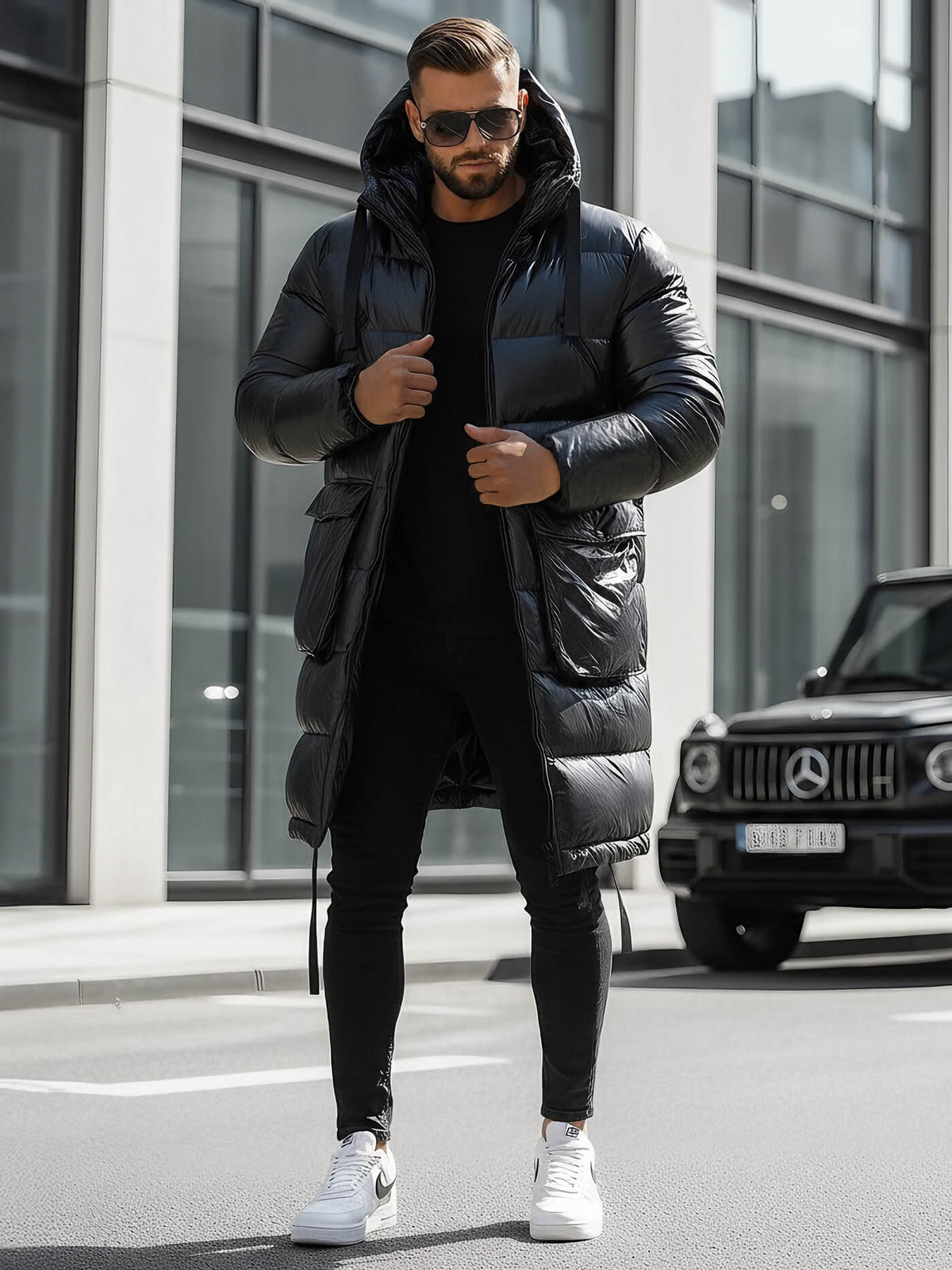 Pánska zimná bunda dlhá čierna OZONEE O/M3205Z