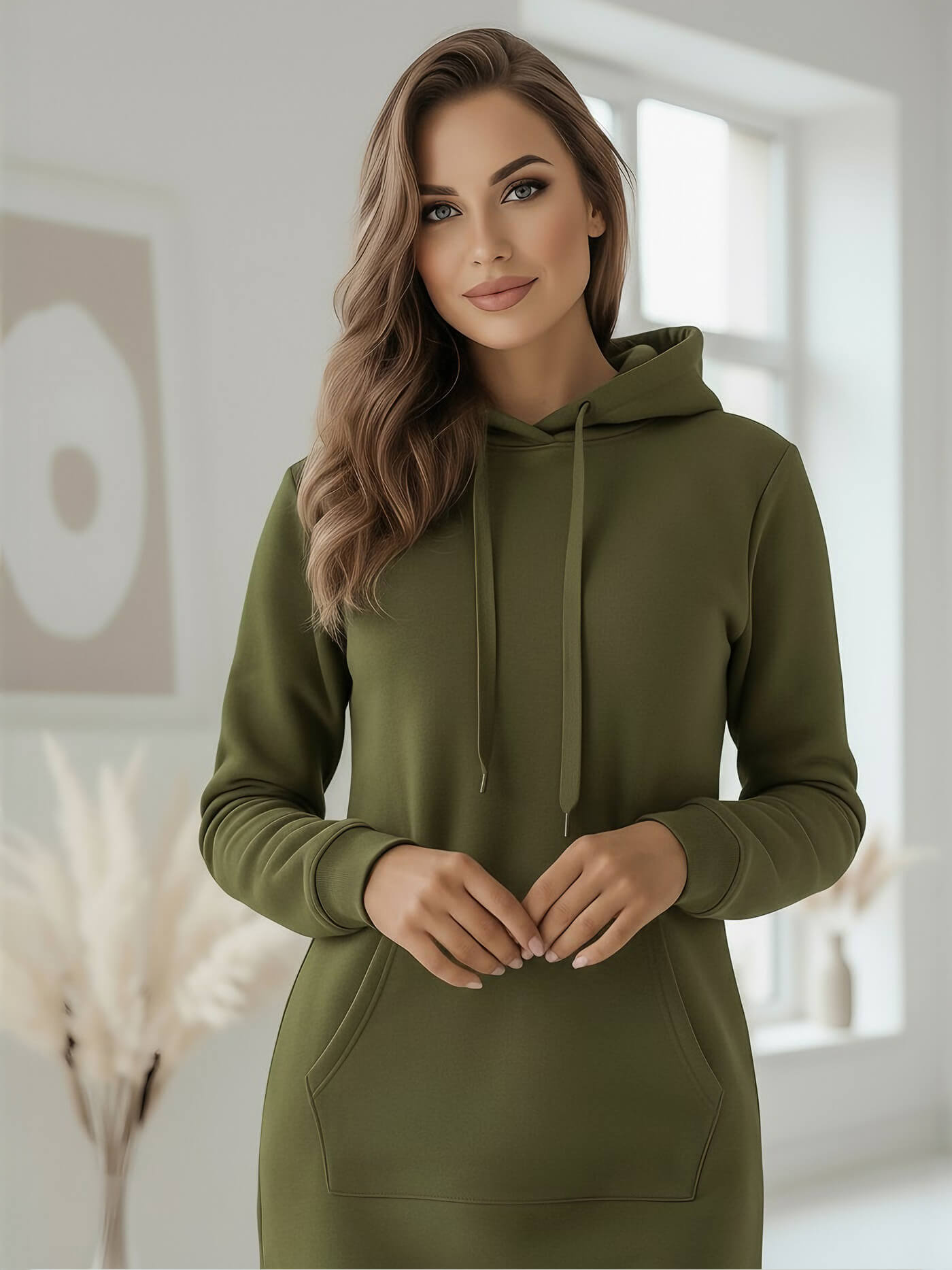 Mikina pochádza z najnovšej kolekcie. Navlieka sa cez hlavu a má dlhší strih do polovice stehna. Mikina má praktickú kapucňu, ktorá účinne chráni pred chladom a vetrom. Jej spodná časť a rukávy sú ukončené lemom, ktorý jej dodáva športový charakter. Mikina má klokanie vrecko. Bola vyrobená z kombinácie bavlny a polyesteru. Vďaka tomu pekne sedí na postave, je príjemná na nosenie, príjemná na dotyk a odolná voči poškodeniu a pokrčeniu.