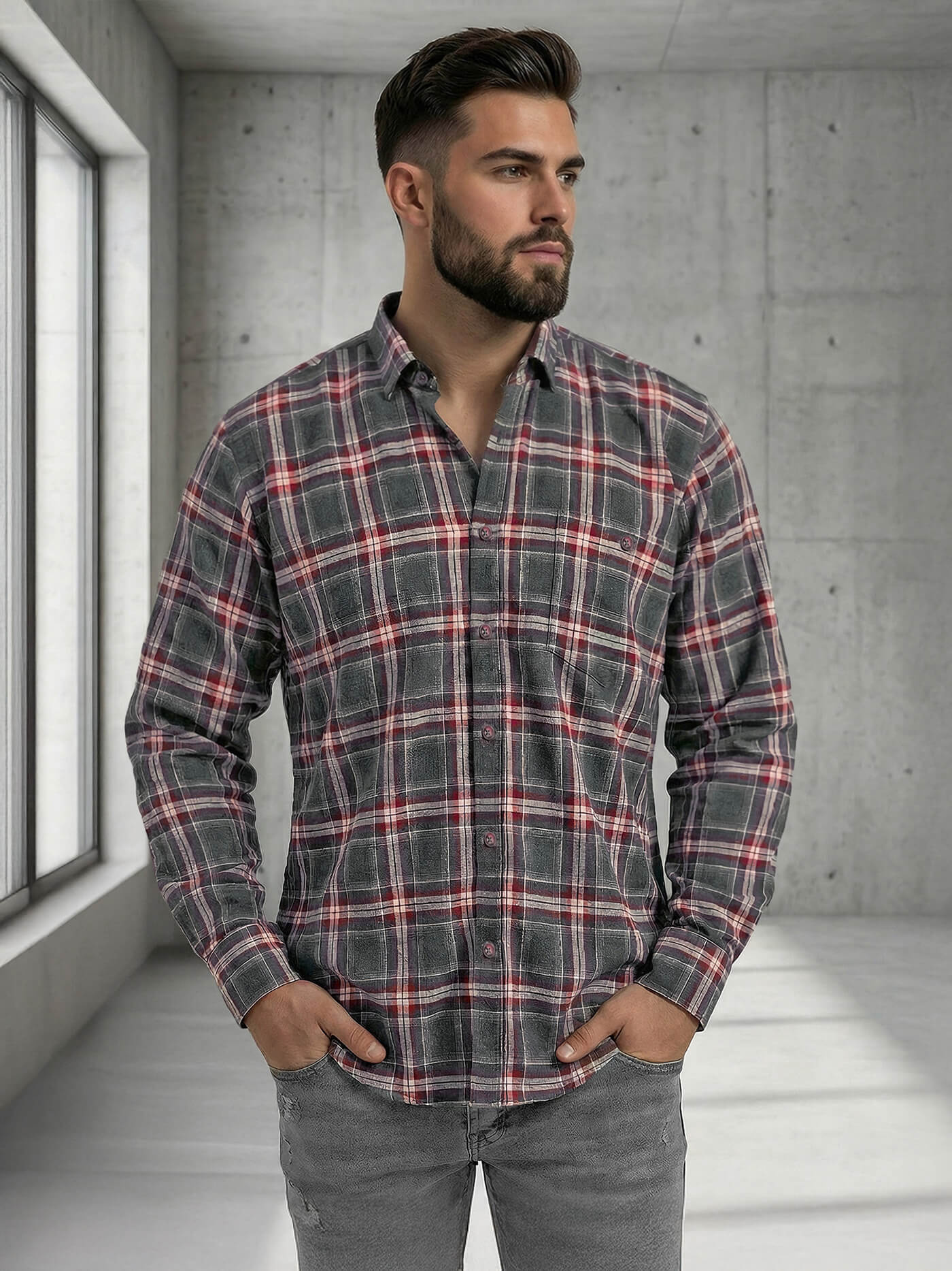 - Pánska košeľa na bežné nosenie s káro vzorom