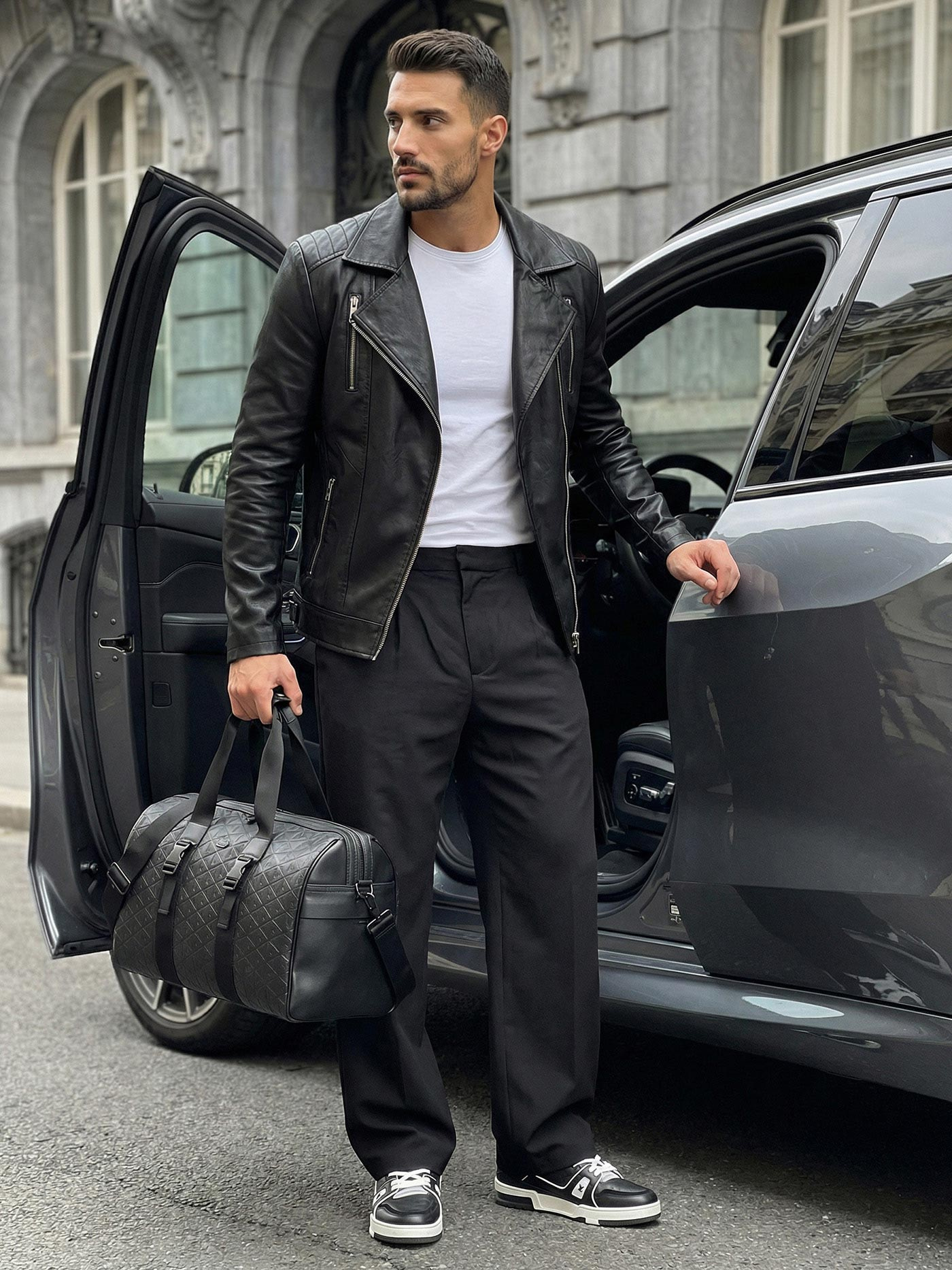 Pánska bunda ramoneska z najnovšej kolekcie značky OZONEE je ideálnou voľbou pre mužov, ktorí ocenia štýl a pohodlie. Táto čierna bunda vyrobená z ekokože a so zapínaním na zips je mimoriadne módnym a všestranným kúskom oblečenia.
